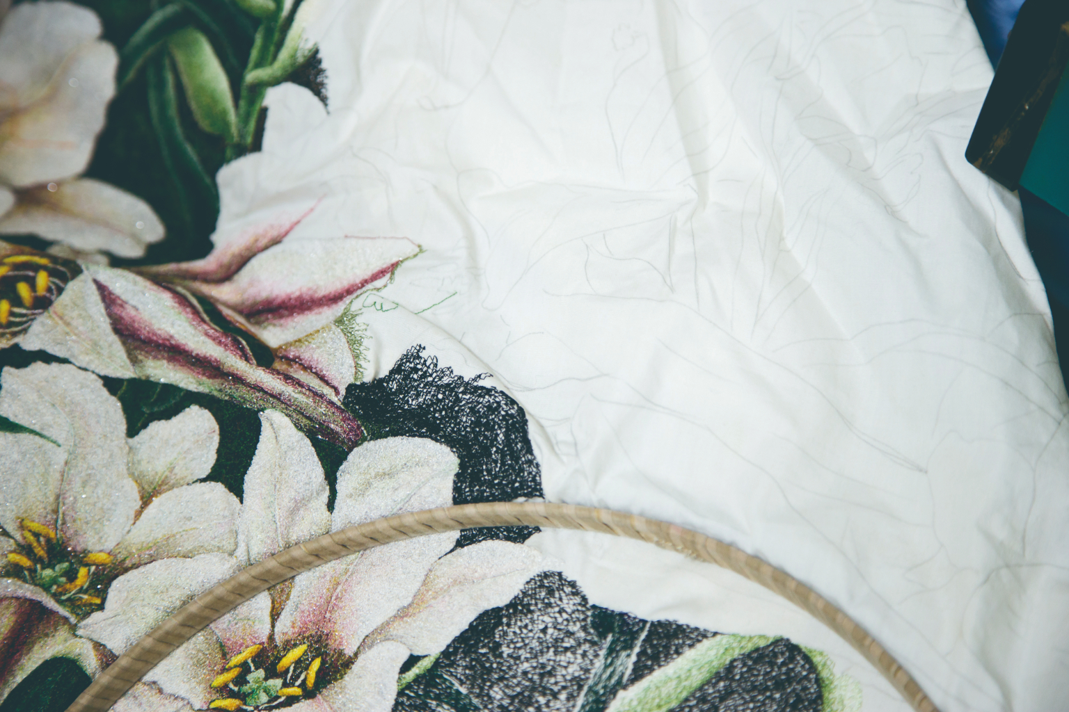 她便拜師學藝,不辭辛勞每天台北與桃園之間來回上課,一開始不習慣電繡車的操作方式與速度,一度想要放棄,但在同學與先生的鼓勵下,她還是堅持下去,或許與她從小超乎常人的耐心有關,這也是從事梅花繡工藝最需要的人格特質。