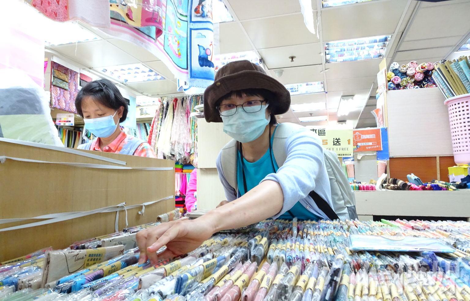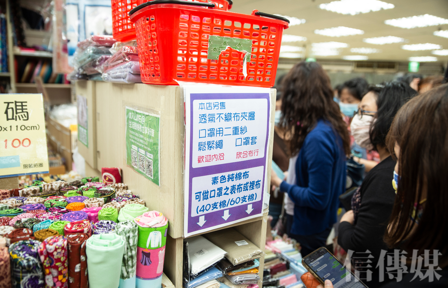雖然今(27)日平日時間,但下午時間永樂市場的布行仍然滿滿人潮,民眾來買布打算回家製作口罩套,而口罩套因為可以換洗,拿下來清洗乾淨後仍然可以使用,尤其學童、上班族用量極大,買了材料回去大概可以做成數個口罩套替換。