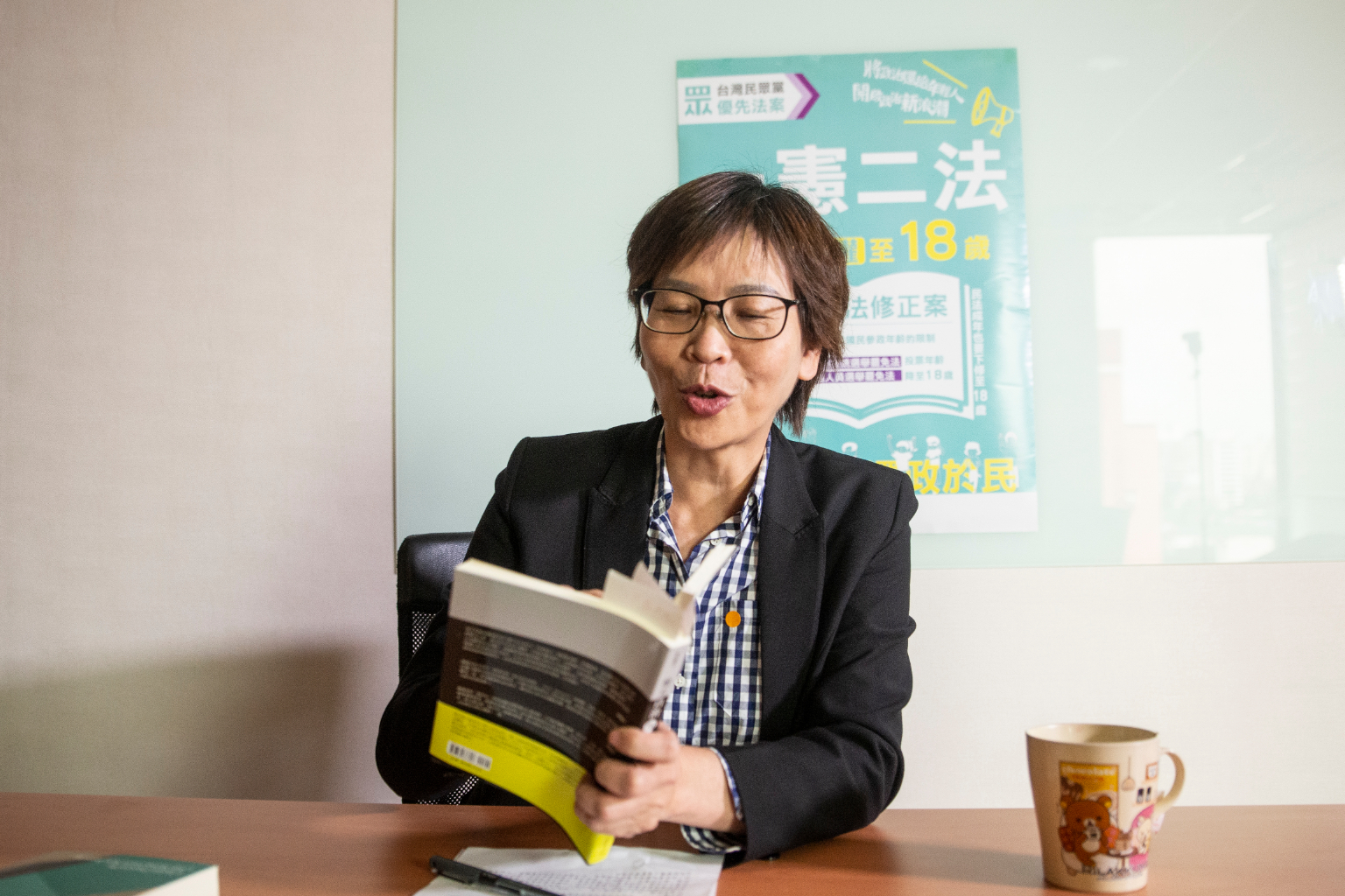 蔡壁如從書桌上拿了幾本書,有些已經讀完,有些為「待辦事項」,背包中放了一本「現在進行式」,每天搭捷運來立法院時,就利用通勤時間趕工;不當「血滴子」的她,反而調成「乖學生」的作息。