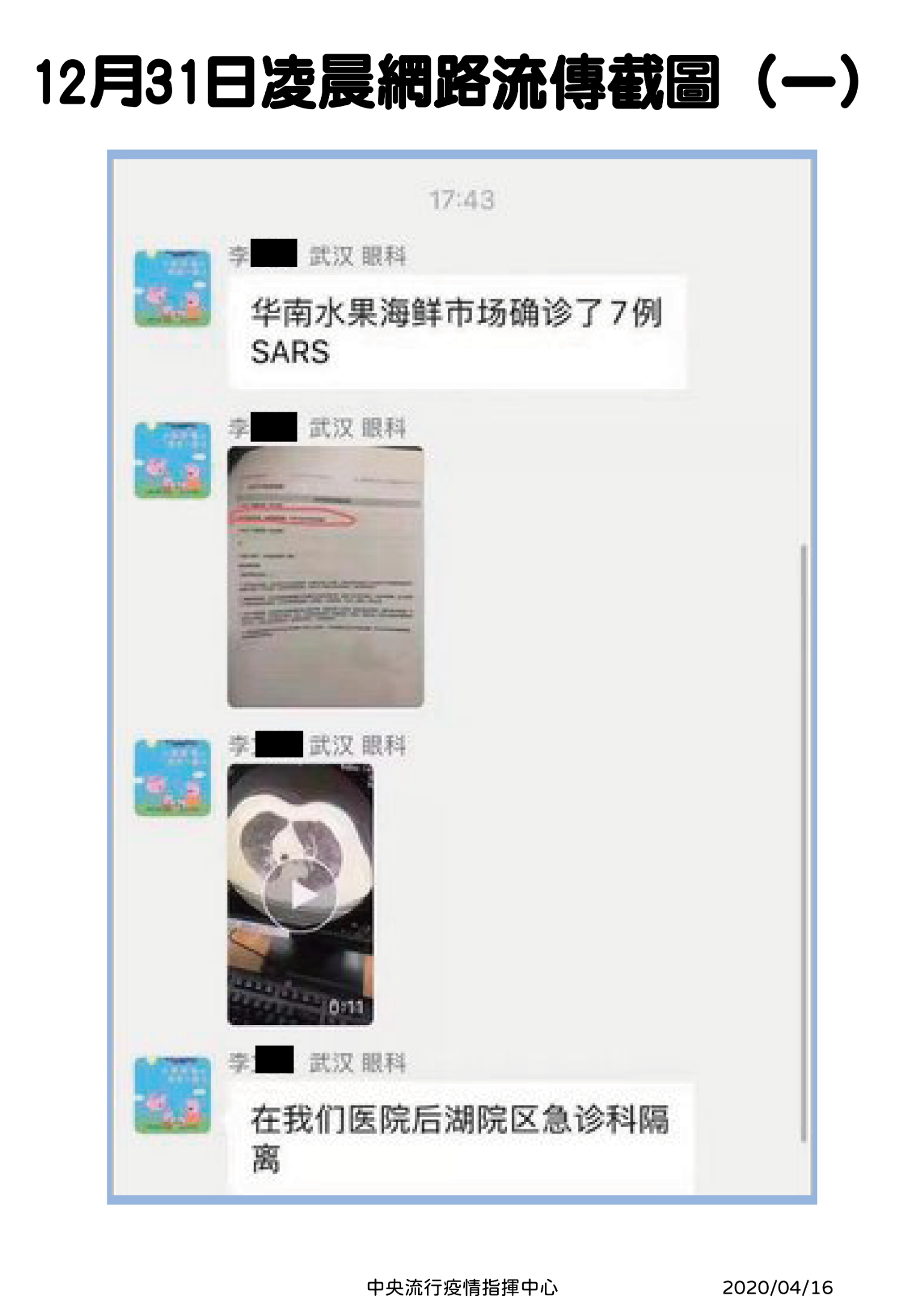 羅一鈞表示,當時這則貼文原po大概是半夜2點多po出來,3點多還沒睡著的防疫醫師看到,羅一鈞在群組上也有看到防疫醫師po的這則訊息,他提到,「這篇跟一般爆料比較不一樣是,從專業面來看,當時首po的訊息截圖中,李文亮醫師有說華南海鮮市場確診了7例SARS,看到SARS的時候我們就有提高警覺,後面又貼出檢驗報告跟電腦斷層的圖,不過圖很小,我當時也睡不著就再去找原來的圖。」
