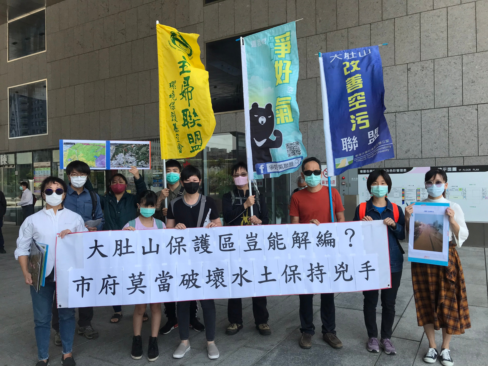 16日環團齊聚市府前,呼籲童綜合醫院另覓更適合的建地興建等訴求。