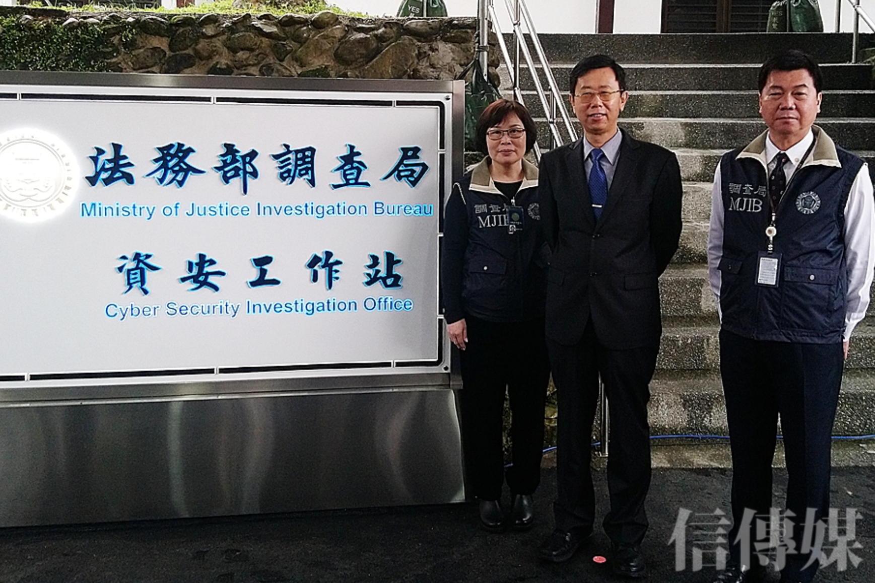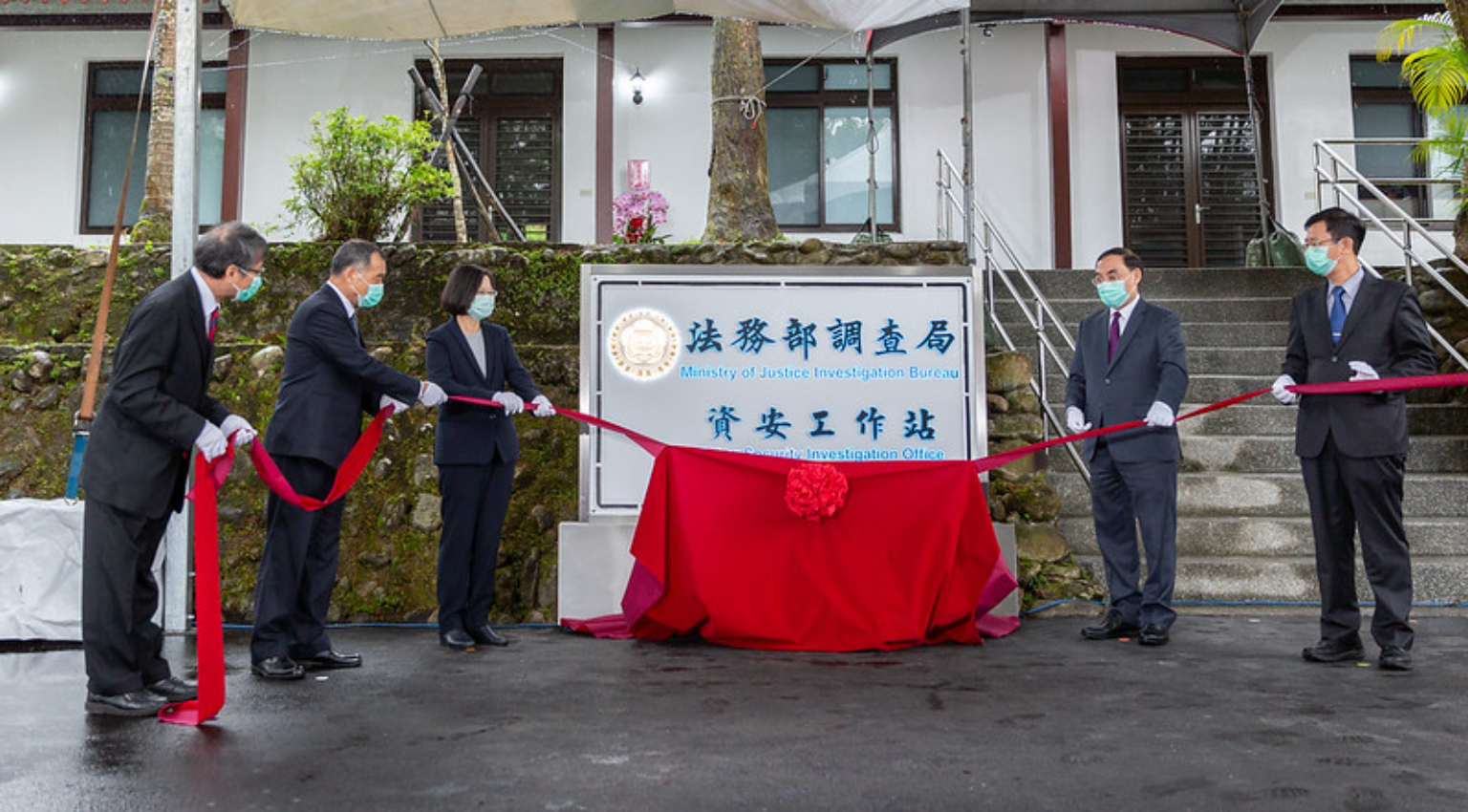 法務部調查局資安工作站揭牌儀式於今天上午在調查局新店青溪園區舉行,總統蔡英文親臨主持,法務部長蔡清祥、法務部副部長林玲蘭、調查局長呂文忠、國安局長邱國正等國安高層到場參與。