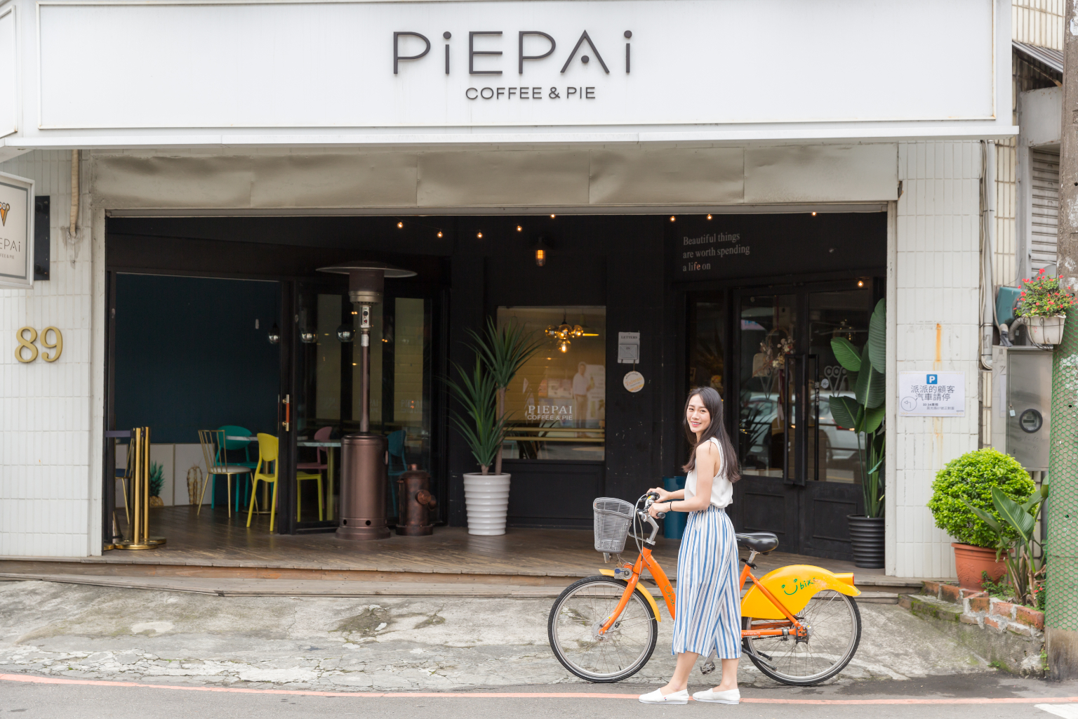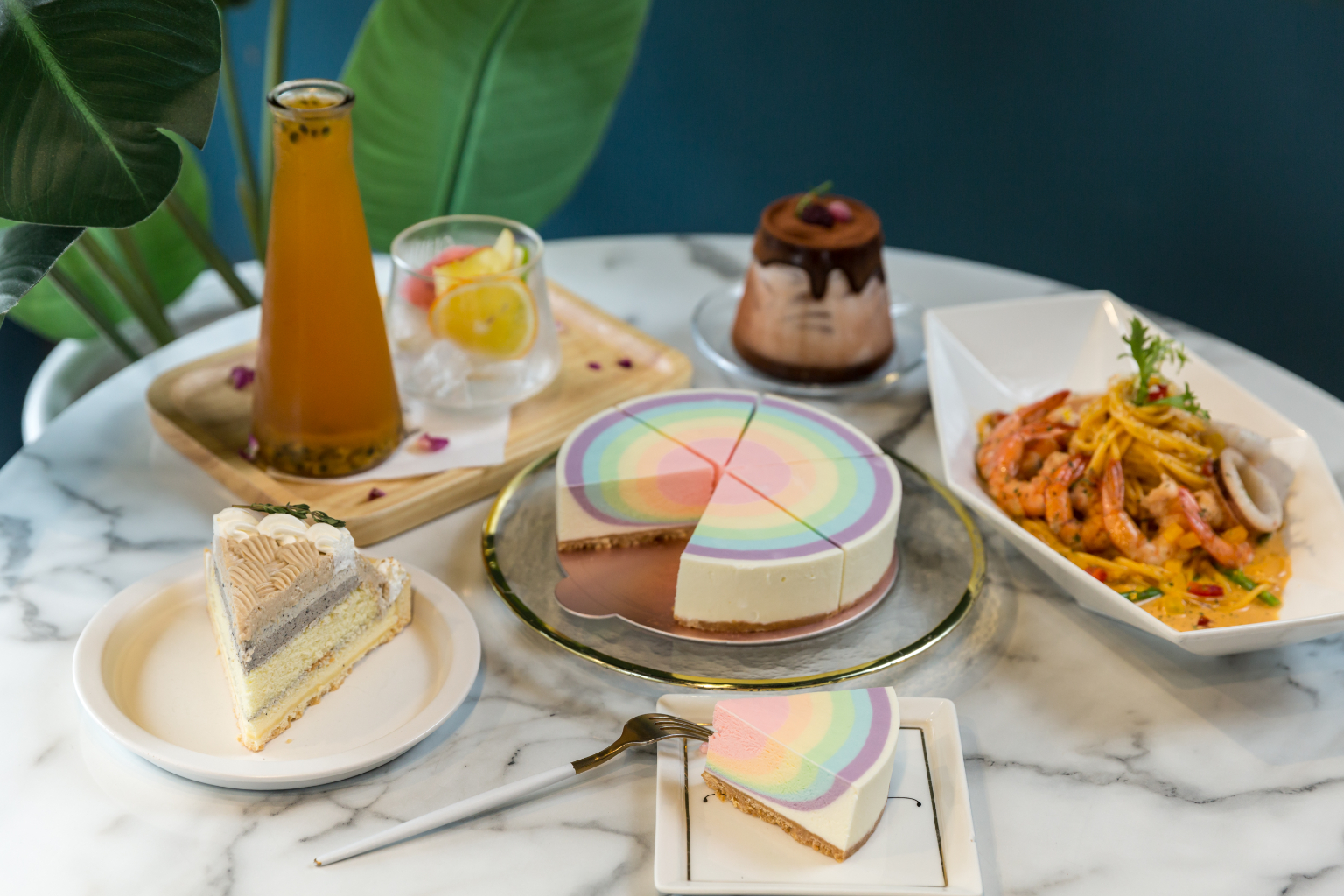 騎著YouBike穿梭巷弄間,來到轉角的「Piepai Cafe'」,整體空間以黑白為主,並以綠色植物和金色物件點綴,看起來清新又高雅。從招牌甜點「彩虹生乳酪」起家,七彩漸層的設計專利,口感帶有檸檬的清香與冰淇淋的滑順,搭配底層餅乾的鹹香酥鬆,嚐來夢幻且療癒!