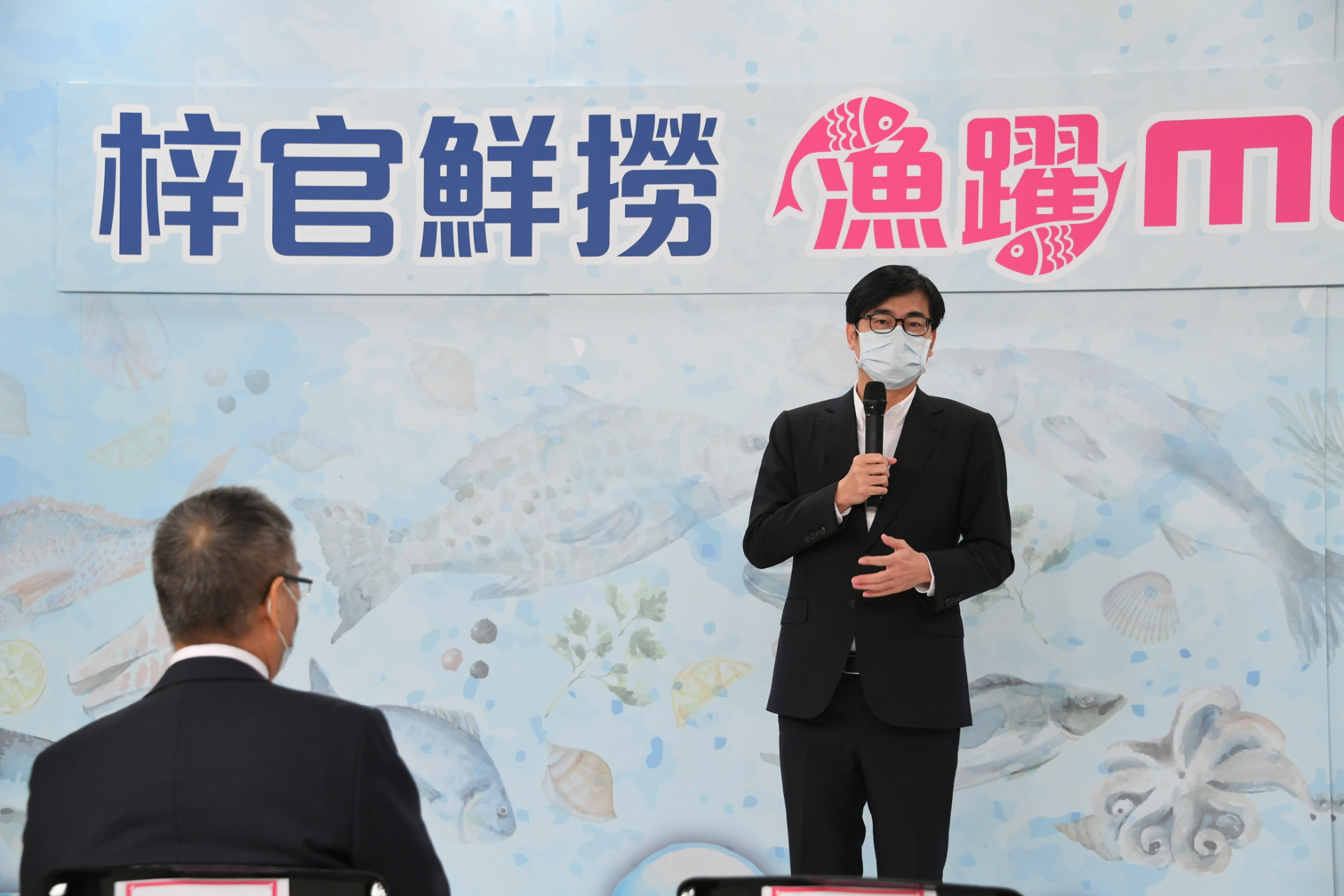 媒體追問,所以你要吃魚嗎?陳其邁說,「龍膽石斑或是龍虎斑是最好的漁產品,這非常好,我非常喜歡吃,每年像永安的石斑魚節我都會去。」