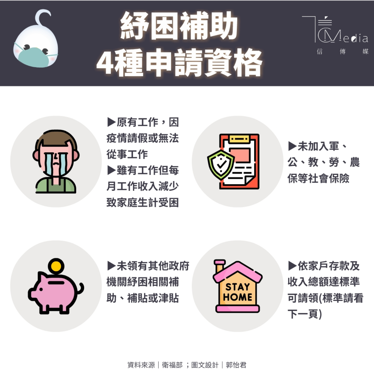 5月6日起即可至居住地鄉、鎮、市、區公所申請,申請書暨個案認定表、存簿或存摺內頁影本、其他證明文件(如從事工作受疫情影響的證明等)。如有疑問可洽居住地鄉、鎮、市、區公所,或撥打1957福利諮詢專線詢問;相關資訊以衛福部為準。
