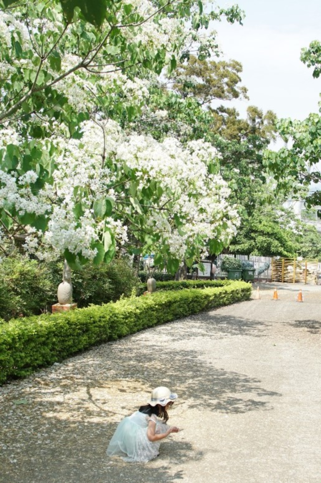 遠離塵囂呼吸大自然新鮮空氣,淡淡天然桐花香撲鼻而來,白色洋裝搭配五月雪超夢幻的。
