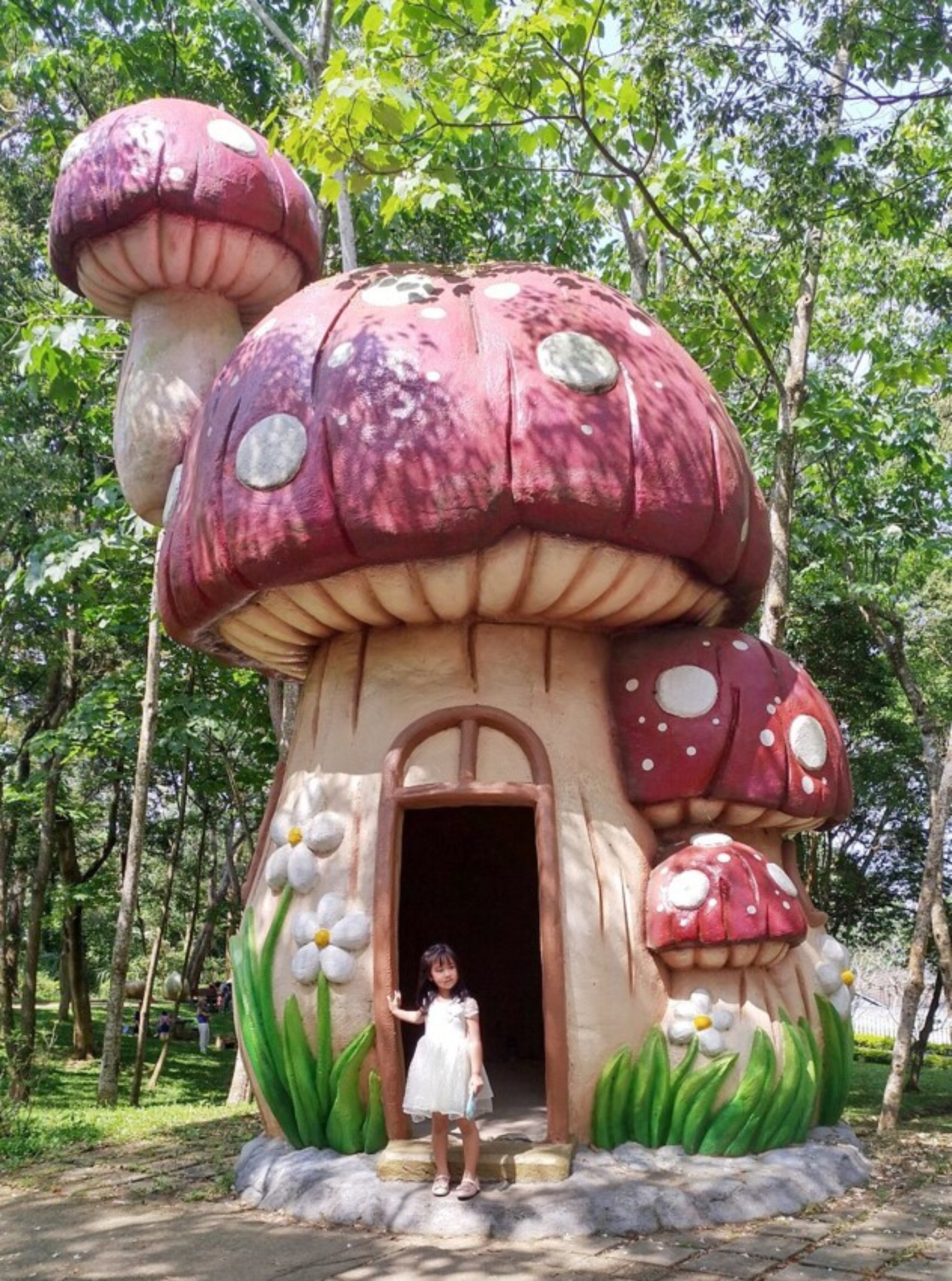 台灣影城內有許多童趣拍照點,捏捏你走進可愛的蘑菇屋,是不是很像小矮人的家。