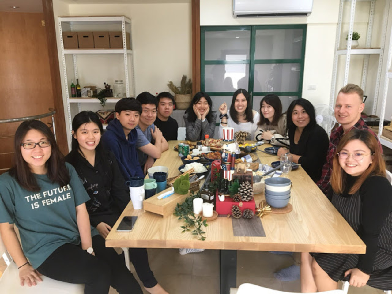 位於萬芳的一、二號居所因交通方便前往政大、師大,外國人室友的比率也相當高,團隊伙伴分享:「有一次我們要煮薑母鴨,買了一瓶米酒回來,但西方人沒有在湯裡面加酒的習慣,他們見我們把酒倒進湯裡覺得很新奇,就直接把整罐米酒加進去,我們趕快阻止他,把大家都笑歪了。」