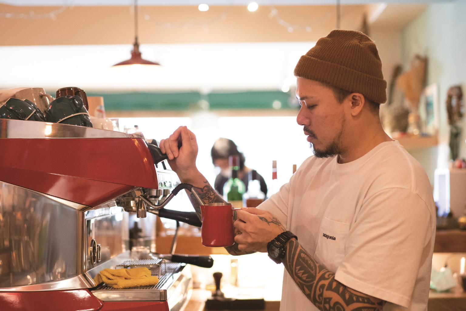 工作任務:阿潘做好毎杯咖啡與飲品,在過程中感受客人的需求,同時不斷精進手藝並開發新品項;阿咪主管廚房部門,包含鹹甜食的備料、内外場、偶爾煮個咖啡。