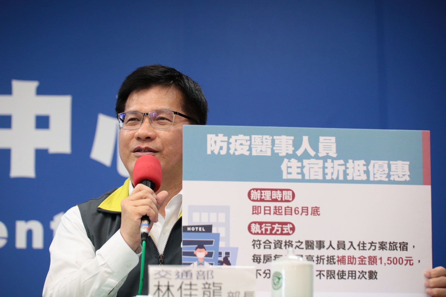 另外,交通部長林佳龍也宣布,交通部配合中央流行疫情指揮中心防疫政策,積極鼓勵各縣市合法旅宿業者加入防疫旅宿行列,提升防疫旅宿量能