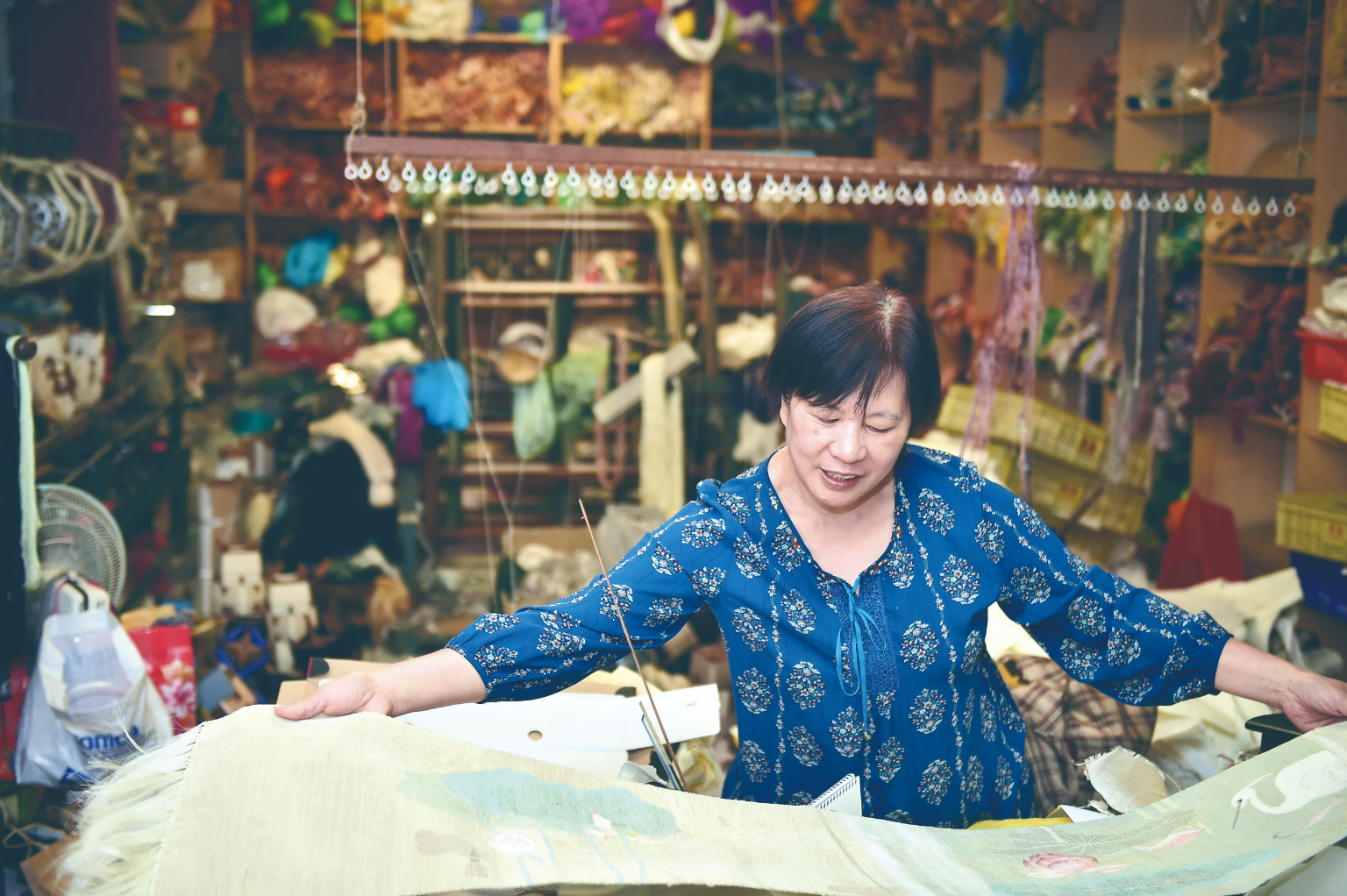 「刺繡就像人生,很繁瑣,但要不厭其煩。」劉老師笑著說,手上的動作卻依然流暢,穿針引線一氣呵成,針起針落,在布面下雋刻色彩,也同樣記錄下她的璀璨年華。