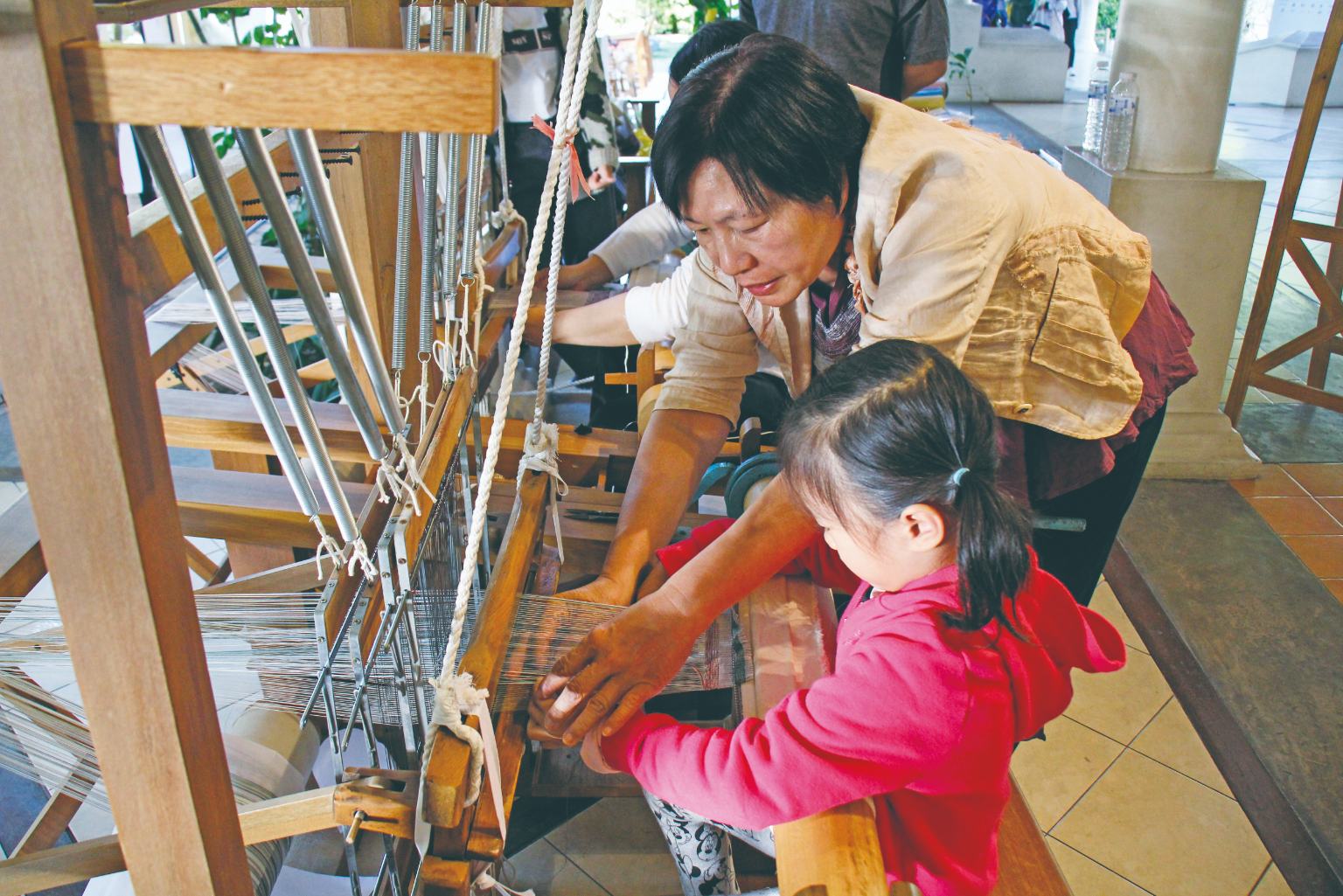 針起針落,繡線在布料上雕琢出精緻的圖樣,線的疏密之間,寫下的是她們的光陰歲月;經緯交織,木織機臺規律地響起碰撞聲,梭子在蠶絲線中穿進穿出,在經線之中,以梭代筆,將色彩一一刻入畫面之中,譜寫出她們的生命故事。