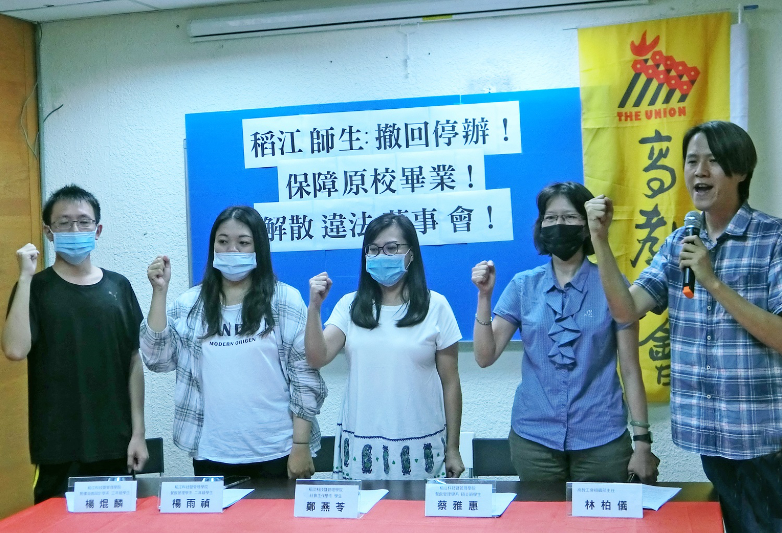 高教工會組織部主任林柏儀表示,稻江管理學院是私校退場的試金石,學校根本尚未獲得教育部核准就私自偷跑宣布停辦,試圖生米煮成熟飯,明顯違法,且非得要退場,也只能先停招,讓在校生能正常上課,之後學生都要畢業了再停辦,而不是現在學生覺得「一開始就不該念這間學校。」