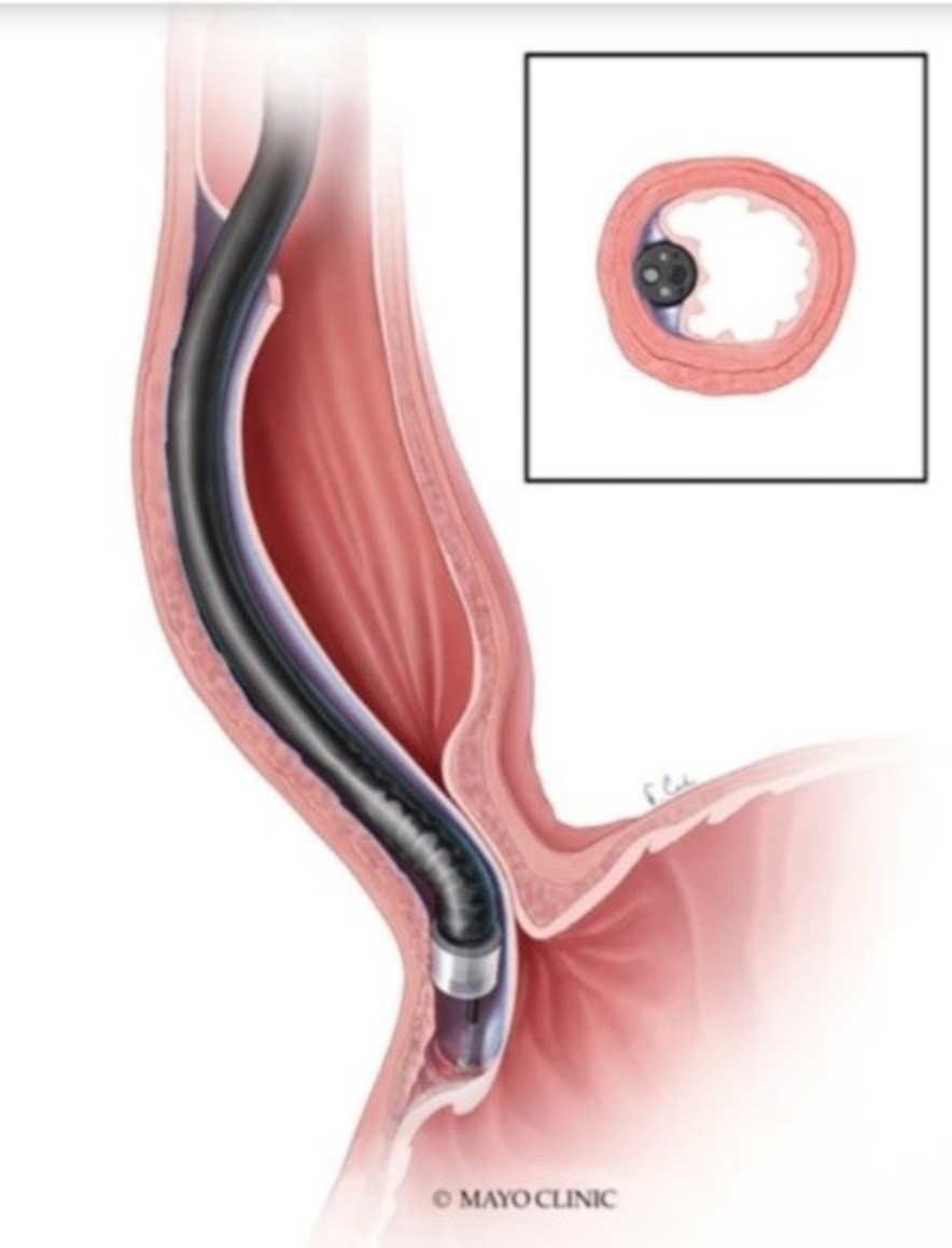 2008年日本井上晴洋醫師完成首例活人經口內視鏡肌肉切開術治療「食道賁門弛緩不能症」,其原理類似外科食道肌肉切開術,用電燒刀將食道黏膜層劃開後,再從食道中段經賁門到胃內,將黏膜下層剝離形成隧道,最後切斷負責收縮的內層環狀肌並保留外層縱走肌,賁門括約肌處壓力因此下降而鬆開,食物便可順利由食道進入胃內。