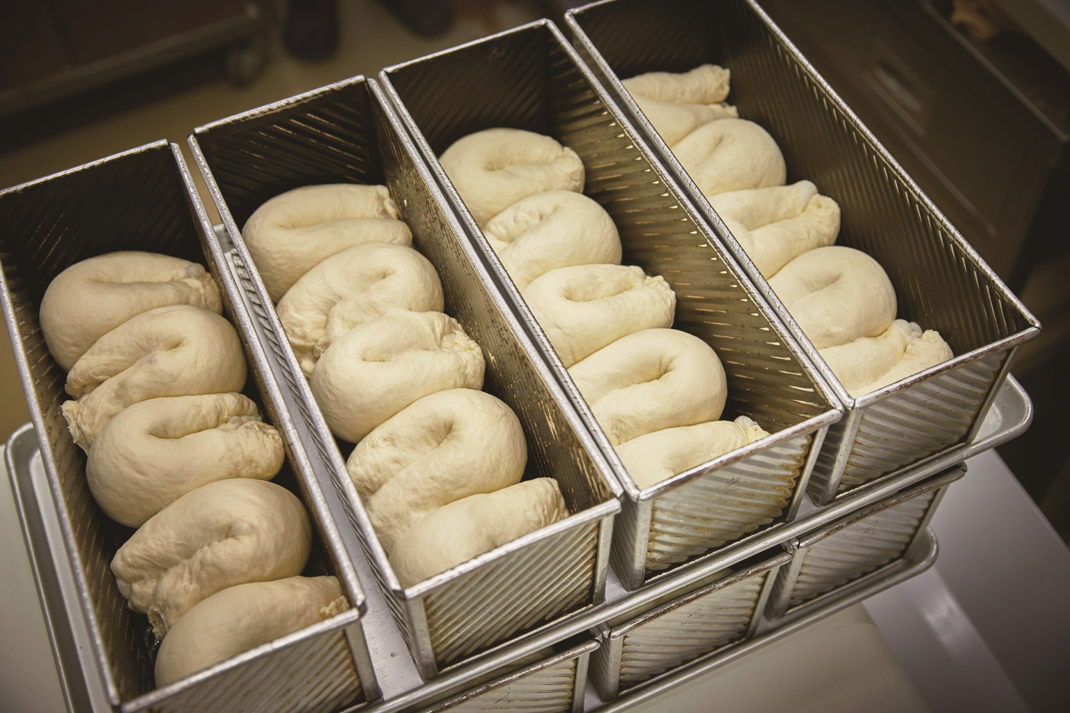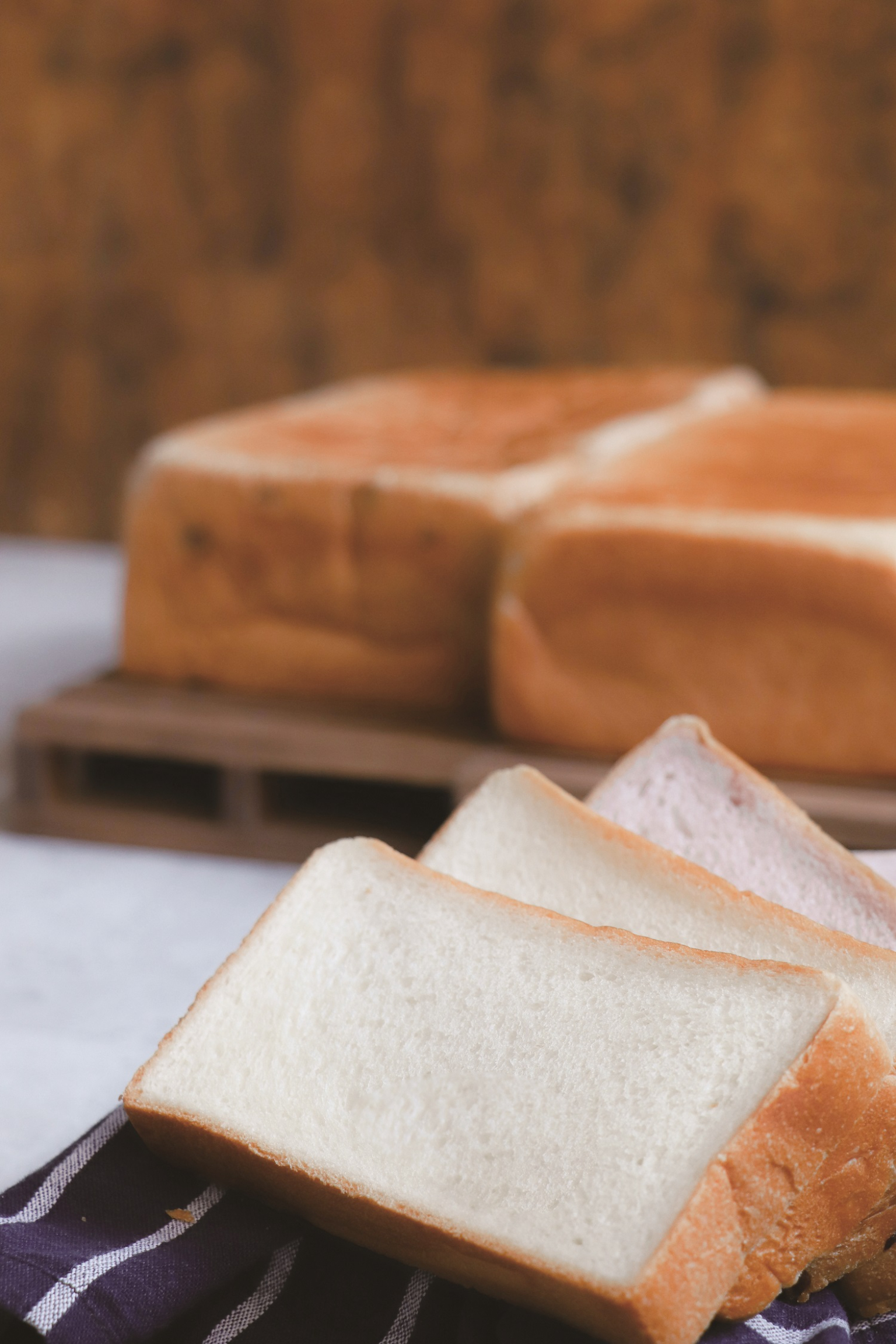 由於對吐司的專精研究,讓日本很早就設計出麵粉與模具的黃金比例,使用日本麵粉製作的吐司,尺寸會剛好占滿模具,四角邊緣會有完美的弧度與略顯白色的線條,吐司的組織也很均勻,不會有過大空隙或是特別扎實之處,這就是吐司最好的狀態。台灣早期麵粉的蛋白質含量較高,容易影響麵團的延展性,所以同樣是帶蓋吐司(四方形吐司),麵團受熱後會不斷膨脹、向上延展,碰到模具邊緣後,還是會持續延展、堆積,因此造成吐司邊較厚、中間特別軟的口感。