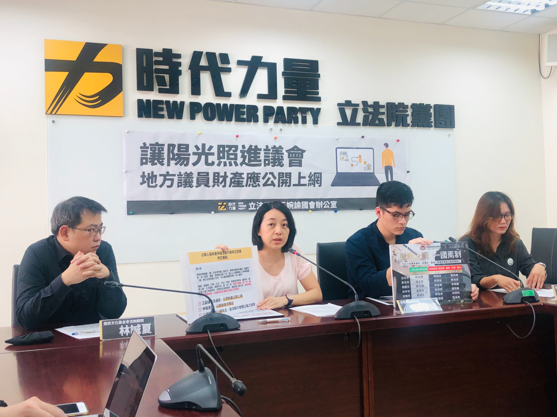 立委傅崑萁先前因炒股遭法院判刑定讞,入獄後卻仍能領薪,凸顯立委別與其他民代的特權,引起修法討論。不過,其實地方議員也因制度漏洞而享有「特權」,那就是他們的財產申報只能到監察院查詢,不像立委、縣市長等,提供線上查詢。時代力量立委王婉諭17日召開記者會表示,將在下個會期提出修法,讓議員財產申報資料能公開上網。
