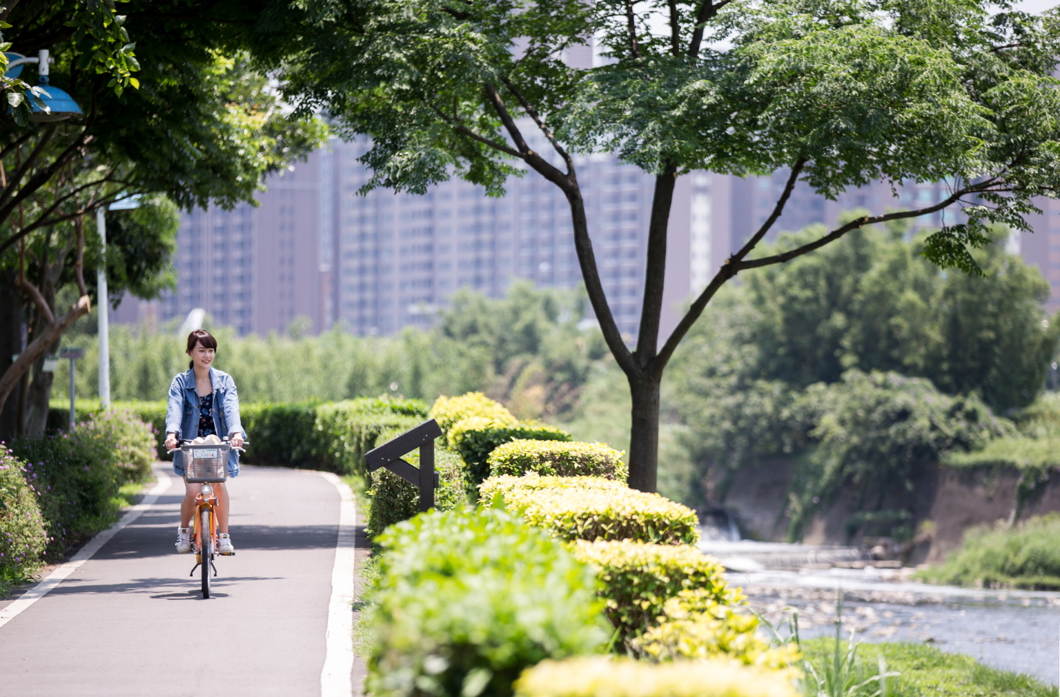 騎著YouBike 慢行在南崁溪自行車道,沿著溪畔而建,且多有綠樹遮蔭,行經南崁溪人工溼地綠化園區,耳邊聽見流水潺潺,徐徐微風迎面而來,在初夏帶走暑氣。途中也能隨時停下腳步,找個長椅或涼亭休息歇會,在少了城市的喧囂中,仔細觀察生活中的小細節,偶爾還能遇見紅尾伯勞、綠繡眼穿梭枝頭,或是看見紅冠水雞行走浮葉上。