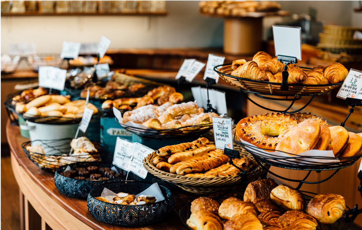 「野上麵包坊」落腳於住宅區內鬧中取靜的環境,來自日本的麵包師傅野上智寬在台耕耘濃厚日本風味的職人麵包,由於重視食材原味,除了從日本進口原料,也不添加過多的物料,保留麵包的原有香氣,店內又以吐司、法國麵包和可頌這3種品項最受歡迎。