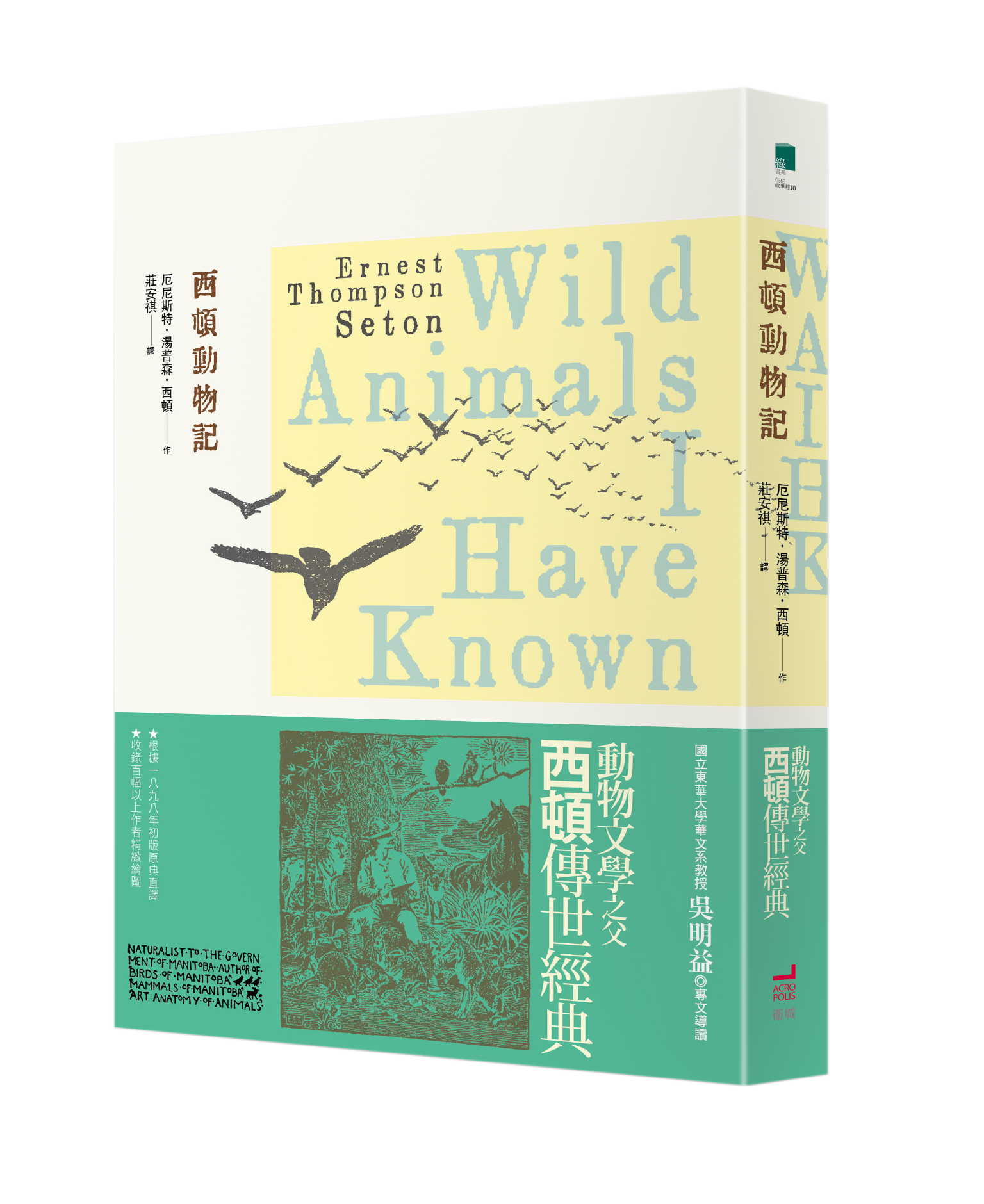 1898年,西頓(Ernest Thompson Seton)親繪插圖,在大西洋的另一側出版了動物文學中遠近馳名的《西頓動物記》(Wild Animals I Have Known),書中動物沒有穿西裝、站著走路,篇篇痛快而激昂,他筆下所有動物都有濃烈的英雄特質與個性,所有故事都受到死亡命運的追逐。
