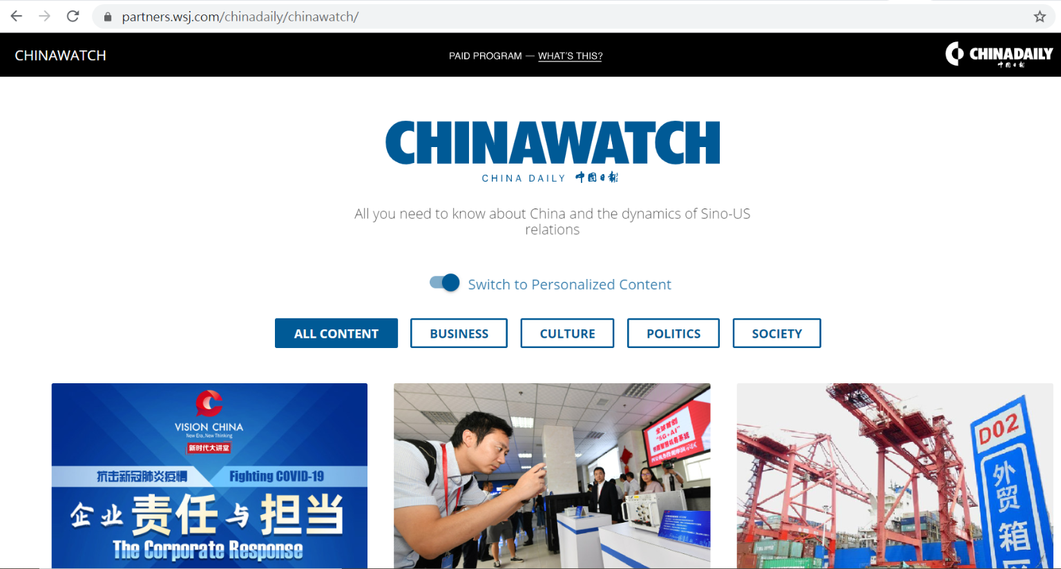 美國保守派網站《每日電訊》(Daily Caller)報導,《中國日報》付給《華日》600萬、《華郵》460萬刊登「中國觀察」(China Watch)專欄,裡面的報導被懷疑帶有「業配文」性質,例如〈習近平向川普伸出友誼之手〉、〈北京駁斥華府對其「軍事化」南海的指控〉。