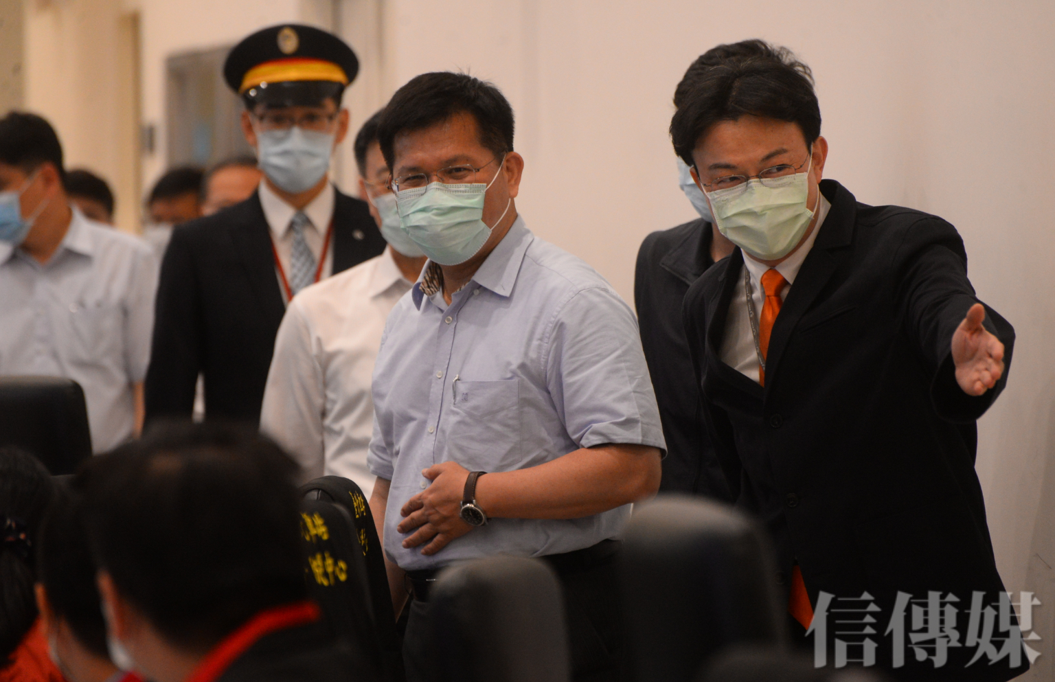 交通部長林佳龍也在傍晚上從台東的行程趕回台北坐鎮端午連假交通疏運狀況,雖然國內疫情趨緩,大家迫不及待趁連假時出遊,林佳龍連假期間出遊或返鄉還是要做好防疫工作,雙鐵特別提醒旅客,搭車務必自備口罩,進站時先量體溫,額溫只要超過37.5度,一律不得搭乘。