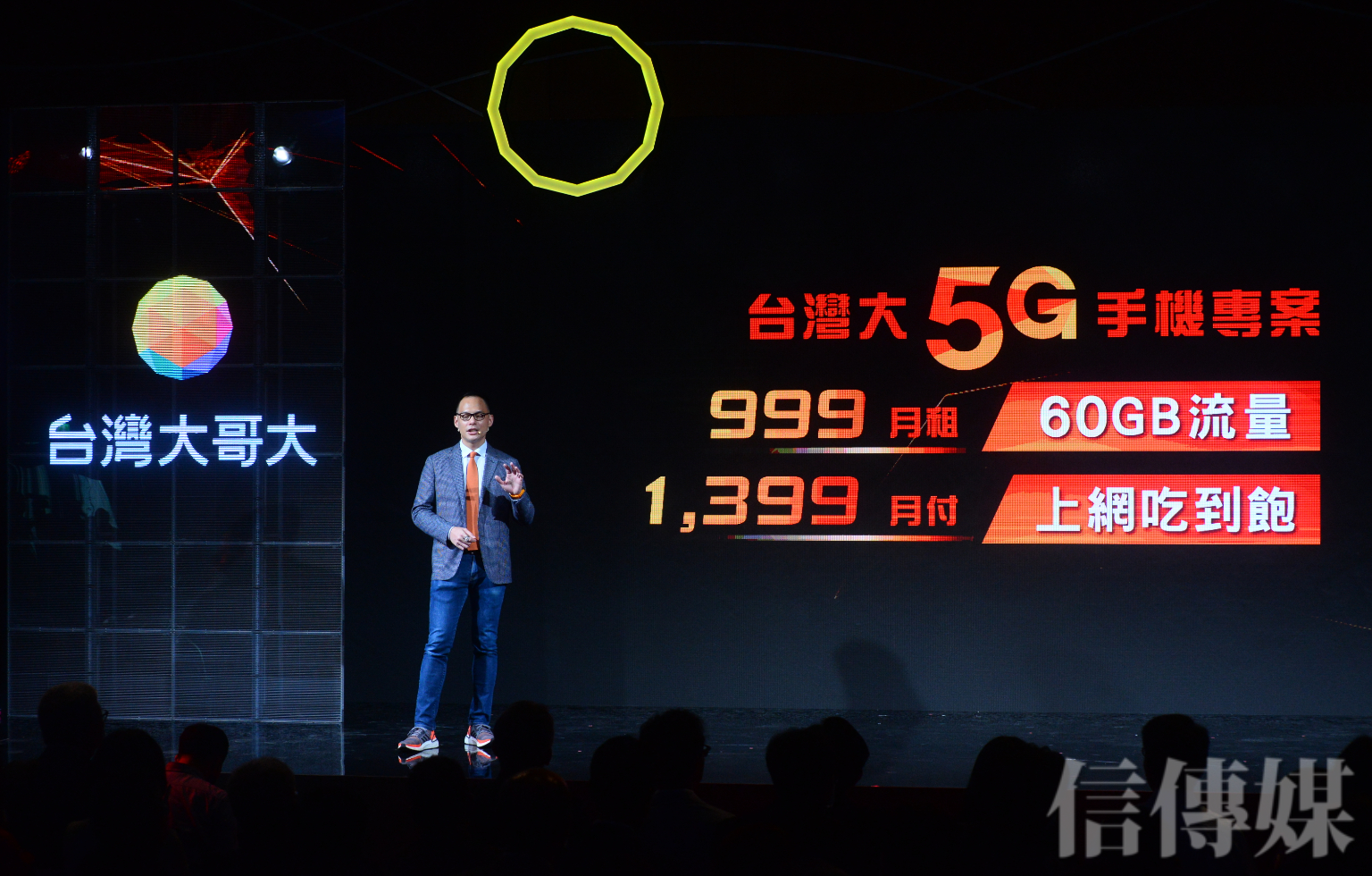 在NCC主委陳耀祥出席見證下,總經理林之晨在現場也展示台灣大5G應用與未來佈局、5G資費方案與建設計畫等,從599元到2699元不等的5G資費方案,月付999元可享60 GB高速上網、月付1399即可5G高速吃到飽,10月31日前加贈熱點分享無限包;同時台灣大也同步推出5G預付卡,只要999元,即可享上網傳輸量60GB (可用60天)與國內通話費100元(約可撥打55分鐘)。