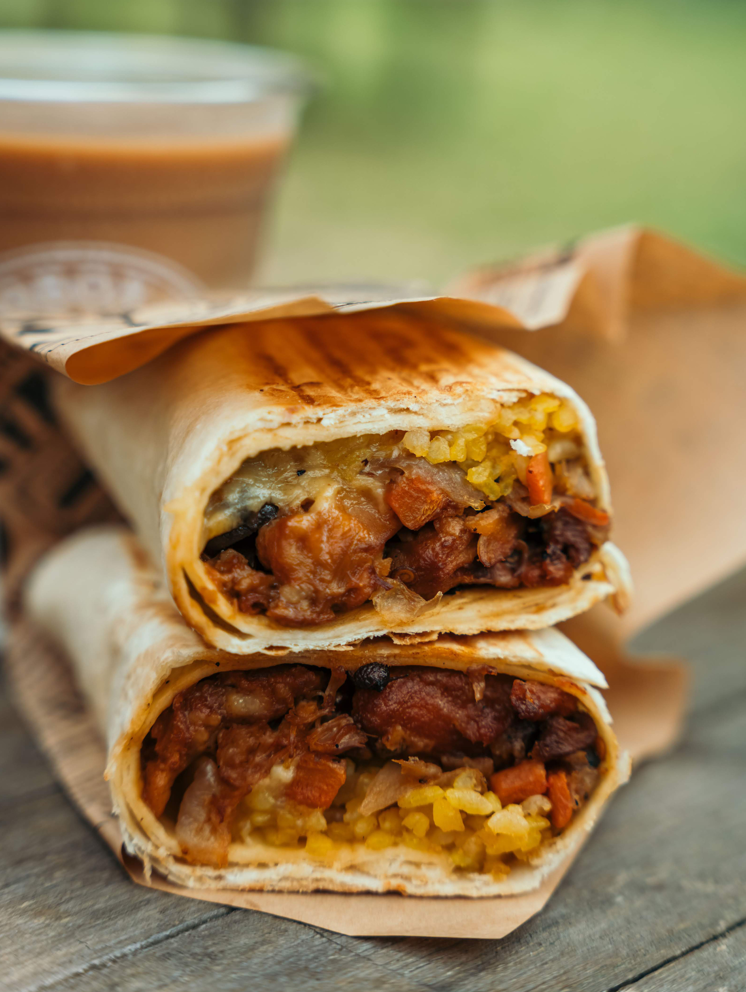 玉米餅源自古巴傳統小吃,內餡選用台灣種植的水耕生菜、洋蔥、紅蘿蔔、番茄、橄欖等多種健康時蔬,並有豬肉及牛肉口味可供選擇,迎合大眾飲食習慣。布萊特餅則是飽腹的極佳選擇,其中椒麻雞丁口味更是人氣商品,先將花椒、乾辣椒、雞丁一同拌炒,再跟時蔬、薑黃飯捲入餅皮中,不僅份量飽滿,微辣口感更是帶勁,讓人一口接一口。