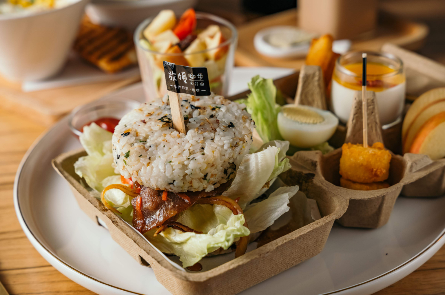 為生活奔走, 總要找時間歇息, 來到「放慢腳步」,店如其名,能讓人閒適暢聊。因為本身有小孩,深知親子出外用餐不便的老闆徐芷淇,打造出親子友善環境,店內擺滿童書桌遊,還有一大片的樂高牆,提供親子共樂空間,也陸續改善店內空間,增添室內綠地野餐區,並且蒐集美觀又實用的野餐籃提供內用及出租,讓空間主題更多元、更具話題性。