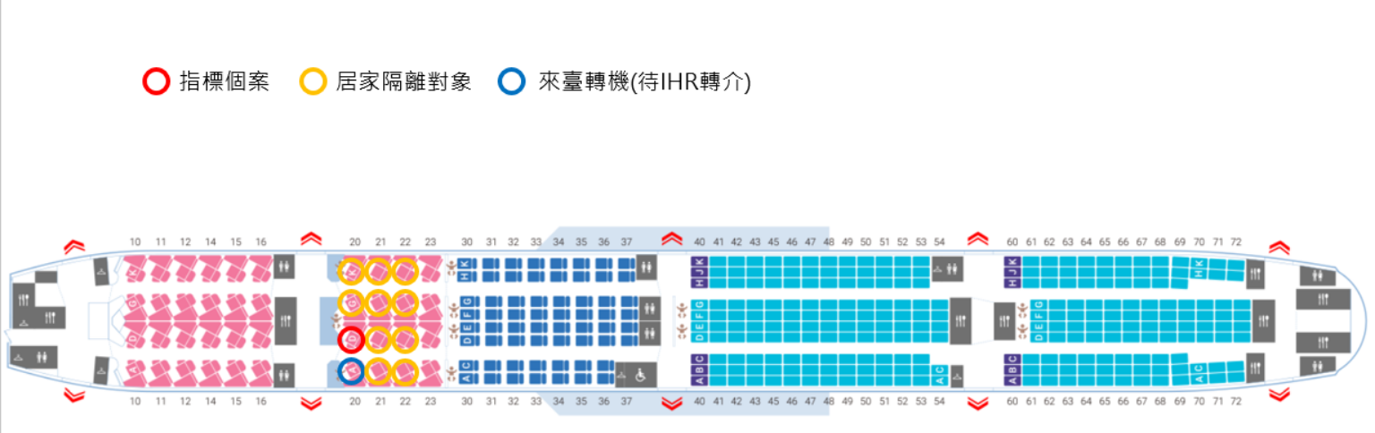羅一鈞指出,該個案搭乘商務艙,在機上全程佩戴N95口罩,以及自備護目鏡、著防護衣,「返國後也有按照規定與檢疫人員通報,已盡了相關義務。」他進一步指出,衛生單位已掌握個案接觸者共23人,其中11人須居家隔離,包括同行同事1人,同班機前後二排乘客10人(另有1人轉機未入境),同班機機組員11人因全程有適當防護,列為自主健康管理對象。