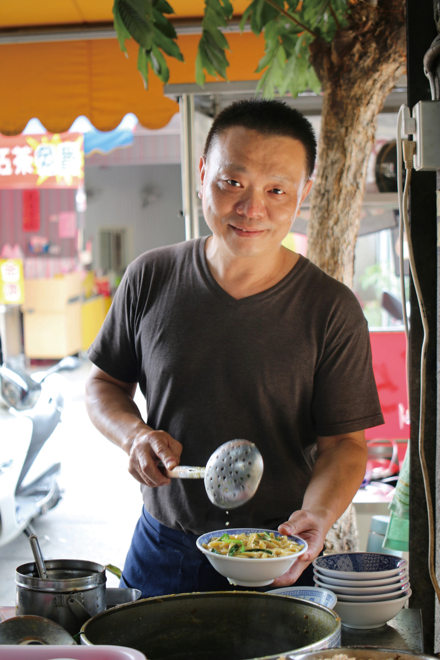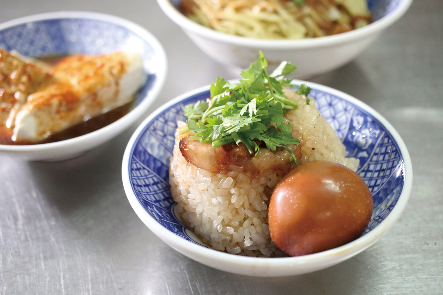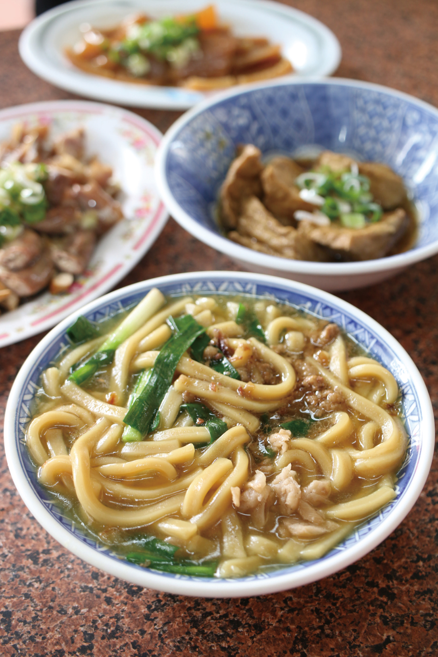 門口的龍眼樹枝繁葉茂,成為合作街大麵羹的醒目路標,老闆陳世明微笑表示:「這棵樹是老闆娘的嫁妝呢!」20年前婚禮當天種下的小樹陪伴著全家人成長,也庇佑著這家傳承45年的老字號永續經營。樸實懷舊的店面內總是人聲鼎沸,絡繹不絕上門的客人們想念的就是大麵羹熟悉的家鄉味,許多人都是從陳媽媽早年推著攤車時就成為老主顧,直到今日即使已有了店面及設置桌椅,依舊喜歡端著麵碗蹲著吃,懷念著記憶中的美好時光。看陳老闆動作俐落地舀起大麵羹,再加入獨家炒製的肉燥、菜脯、紅蔥頭等,隨著氤氳熱氣飄送出陣陣香氣誘人垂涎,而散發著淡淡鹼味的麵湯也增添了豐富食感,攤車上的小菜更是誘人垂涎,豬皮、油豆腐、貢丸……等都是佐麵良伴,入口齒頰留香。
