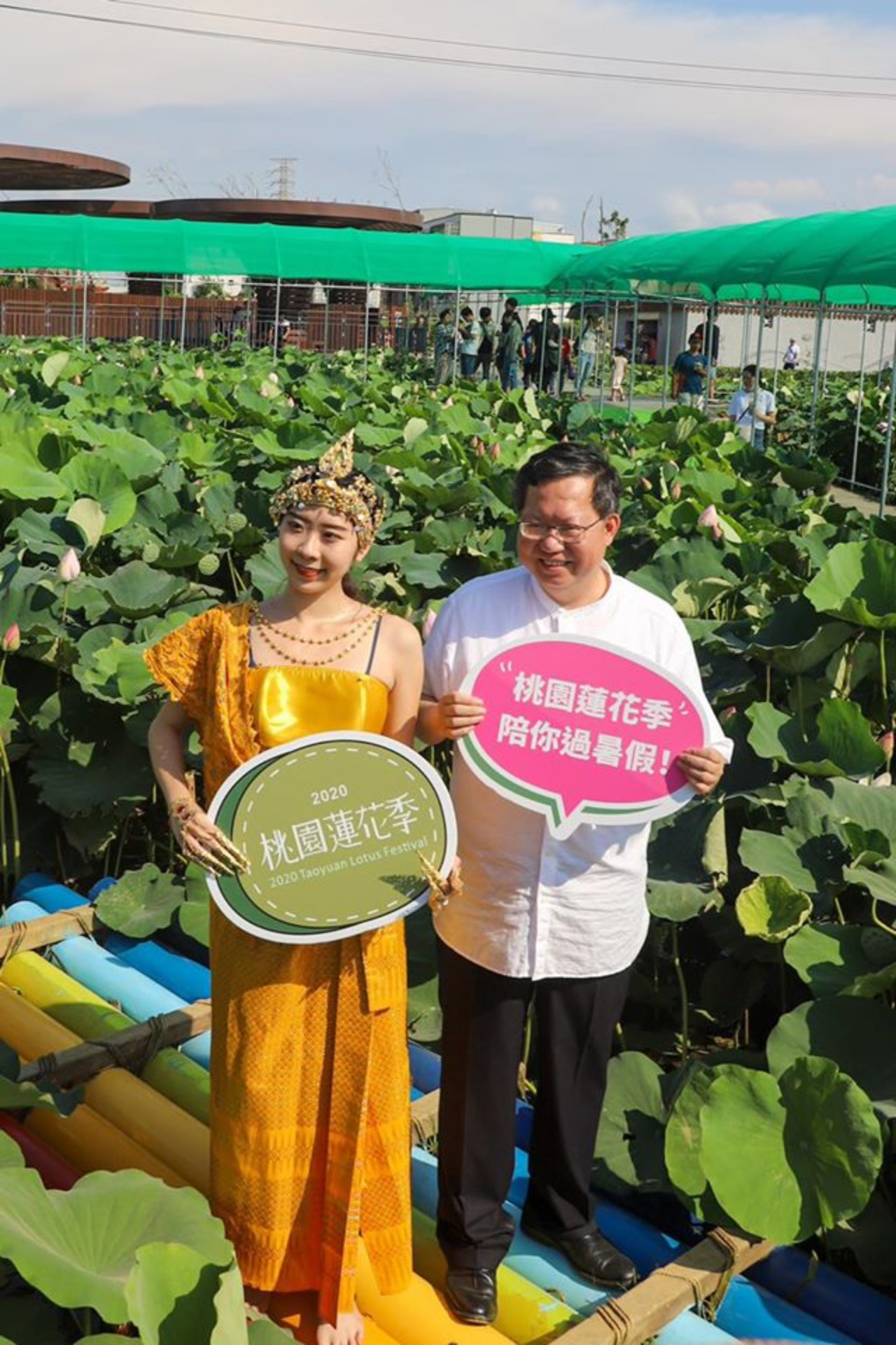 持續往北走,桃園市政府主辦的2020桃園蓮花季5日在觀音區蓮花園休閒農業區盛大開幕,強調是解封後桃園市主辦的第一場大型活動,首場活動「花遊世界‧國際蓮花園」,以各國為主題打造出6種不同風格的國際拍照景點,包括法式風情的「莫內的花園」、日式風格鳥居參道的「林家古厝」、巴西亞馬遜雨林大王蓮田的「康莊蓮園」、泰國紅蓮花水上市場的「荷竹農場」、越南河內西湖蓮花池的「蓮荷園」、印尼峇里島的「青林農場」以及神似澳洲墨爾本莫內湖的「蓮花故事館」等場景,讓遊客一解無法出國之愁。