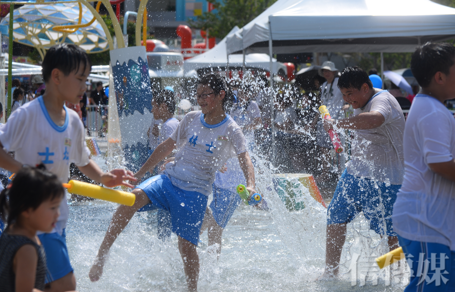 兒童新樂園新完成的小小水樂園今(13)日午正式對外開放,在酷熱夏天玩水也讓孩童們興奮不已。(攝影/趙世勳)