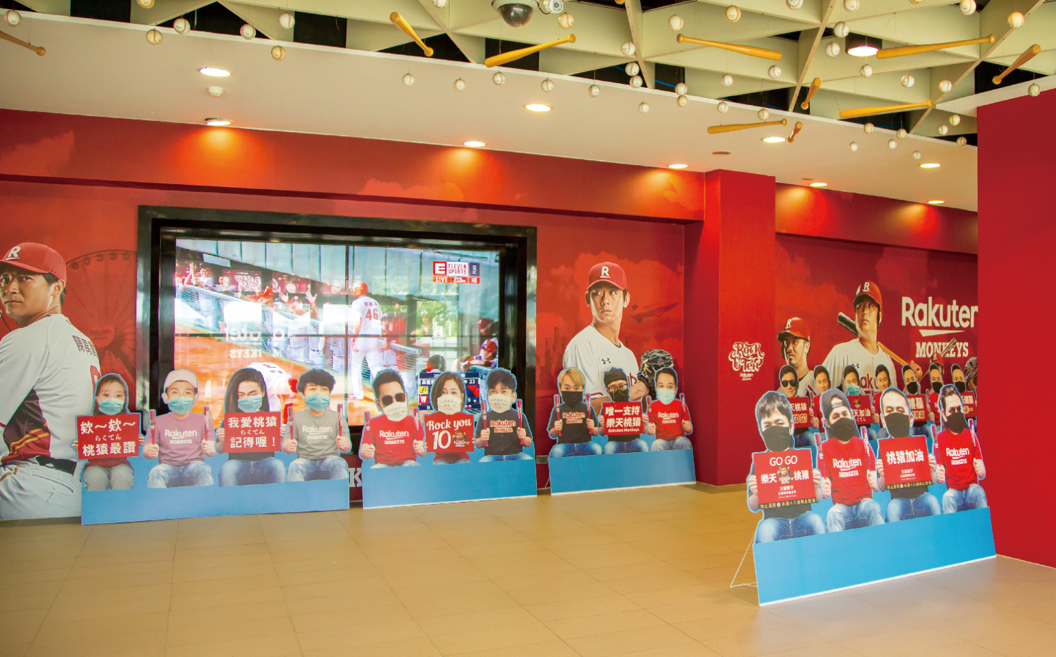 為了讓球場更有氣氛,球團創意發想,在空曠的觀眾席上放置假人加油隊,球迷甚至可上網客製自己的臉與人型,用另類方式為選手加油打氣。球團亦於直播中安排Rakuten Girls 在場邊吃火鍋邊看球賽,搭配主持人幽默風趣的言辭,讓線上觀賽的球迷彷彿親臨現場,趣味十足。活潑生動的轉播方式, 吸引國外例如CNN、NHK、BBC等各國媒體報導,也提升台灣在國際間的知名度與關注。