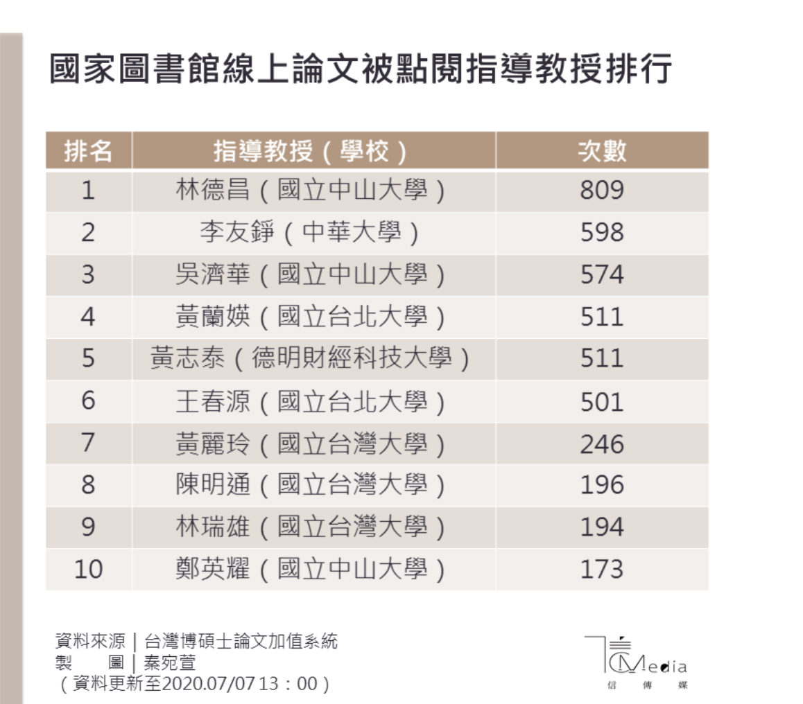學生論文有狀況,第一個被檢驗的就是指導教授,也因為學生的論文爆熱,所以指導教授被點閱數都榜上有名,如李眉蓁的指導教授林德昌、李友錚、吳濟華、蔡壁如的指導教授黃志華,排名第10的是中山大學校長鄭英耀,排名第8的是陸委會主委陳明通。