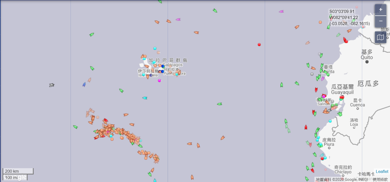 厄瓜多外海的加拉巴哥群島(Galápagos)近日出現約260艘漁船組成的艦隊,其中大部分掛著五星旗,儘管並未侵入厄瓜多專屬經濟海域(EEZ),但已引起強烈的領海及環境爭議。