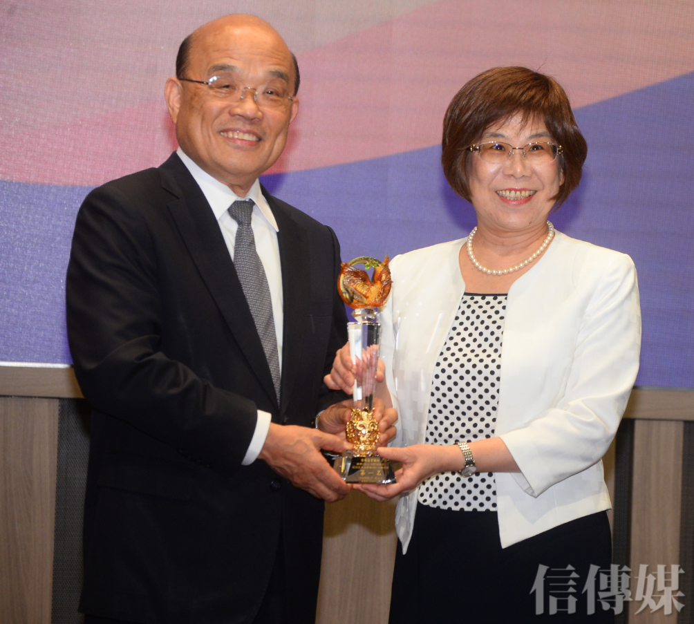 金管會29日下午在台北舉行「獎勵本國銀行加速辦理紓困振興貸款方案評比優等銀行表揚典禮」,行政院長蘇貞昌頒獎予以彰化銀行董事長凌忠嫄等獲獎者。(攝影/趙世勳)