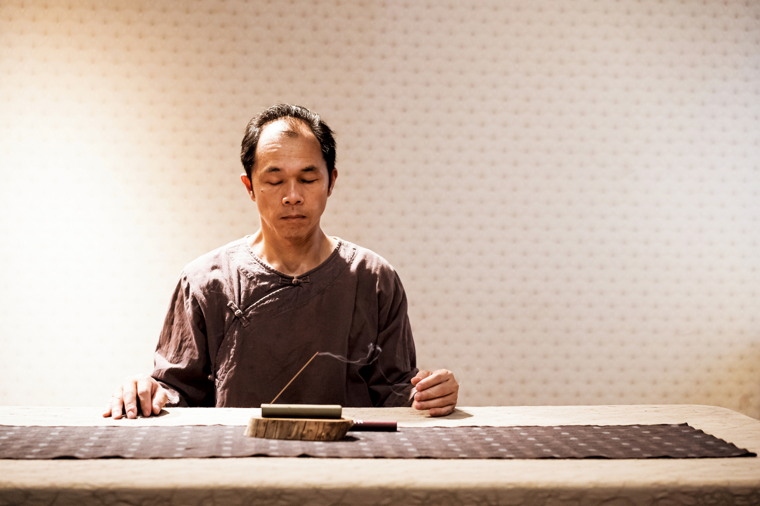 點燃臥香,林建宏閉眼靜坐,冉冉上升的白煙,將香氣逸散至整個空間。如何判斷香的品質?「聞」是林建宏的不二法門。他帶我們試聞天然香粉及人工香精,後者雖有香木的味道,卻多了一股不自然的香氣,「天然香氣讓人胸開氣順,人工香精聞久了,頭會覺得重重的。」如果曾被刺鼻的廟宇香火熏到頭暈胸悶、眼睛睜不開,也是使用劣質香的緣故。