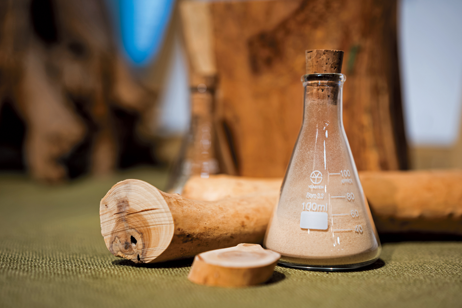 跟著林建宏走入研磨室,他指向懸吊的沉香原木說:「我們都直接採購原木,好的原料一定要自己研磨,才能確保品質。」原木送入油壓機壓成碎片,再逐步研磨至顆粒、粉狀,透過機器攪拌均勻。