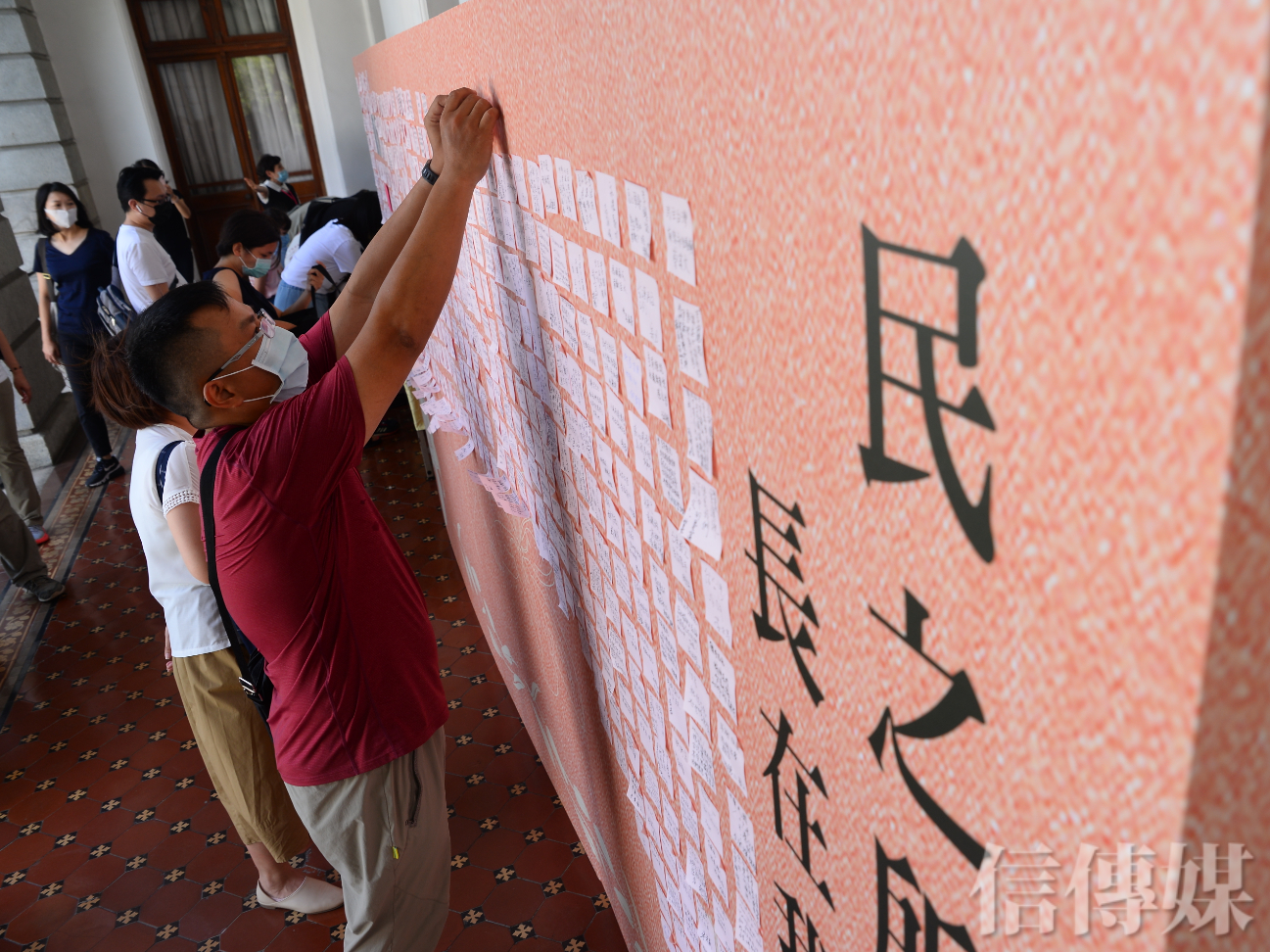 追思會現場有留言牆,讓民眾可以留下追思的話,多數民眾都寫下對於李登輝的追思,民主先生是最常出現的形容詞,甚至有民眾留下「台灣國父」來形容李登輝,也有人寫下「台灣就是台灣國」,現場也有出現日文留言以及從美國回來的台灣華僑。
