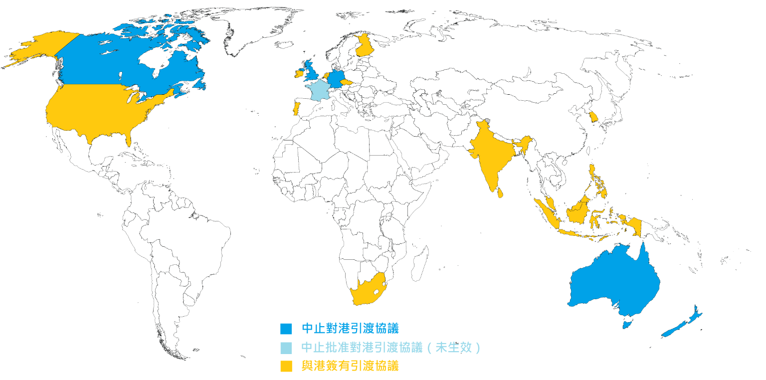 目前香港仍與14國維持引渡協議,然而至少還有4國正在考慮中止,包括美國、芬蘭、捷克和愛爾蘭,如此一來,香港引渡區域將集中在亞太。