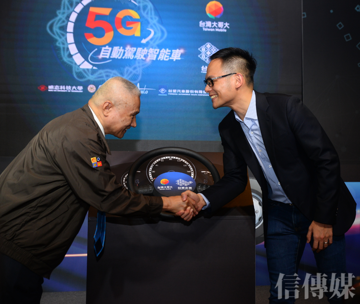 今(6)日台塑汽車貨運董事長陳勝光與台哥大總經理林之晨一同打造5G自動駕駛智能車,未來5G相關技術的創新應用成品也會陸續出現。(攝影/趙世勳)