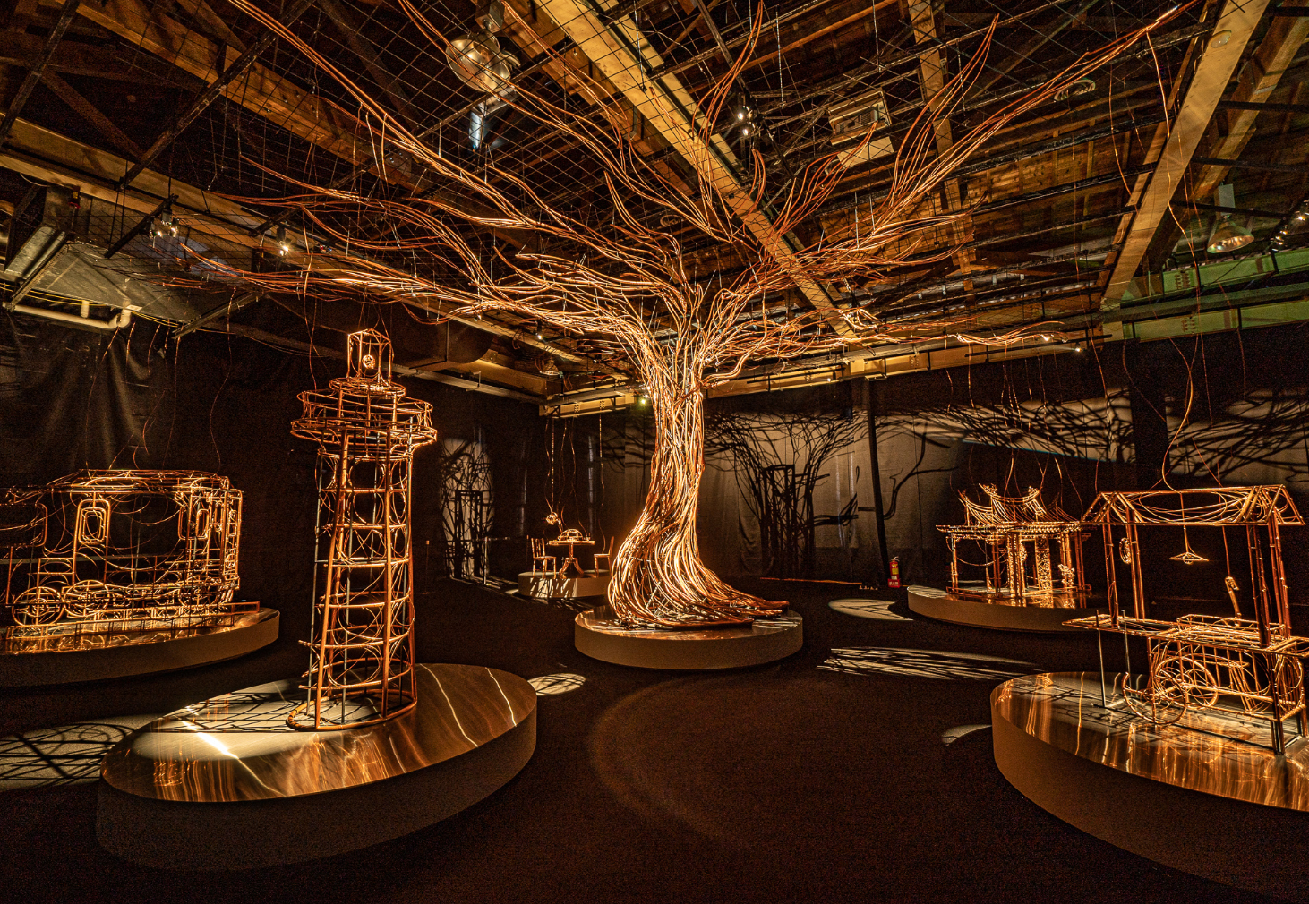 「電線電纜本來是很生硬的東西,我們應該在生硬的銅上面加上人文的東西。」大亞電纜董事長沈尚弘表示,這次特別找來德國紅點設計獎藝術家李昕,大膽的用重達1公噸電纜的主要材料「銅線」作為藝術創作的材料,凸顯出電纜和生活其實習習相關,沈尚弘說,電纜像血管,把能源帶到人們生活的角落。