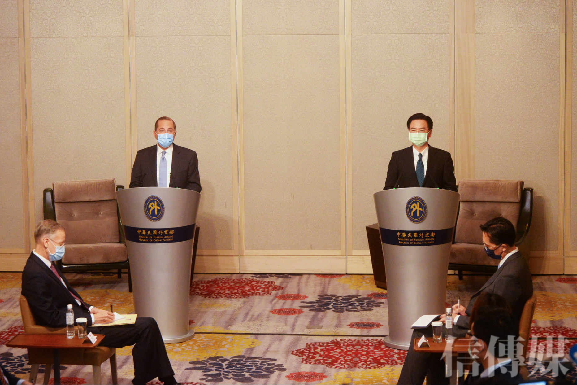 面對中共的武嚇威脅,美衛生部長阿扎爾今天上午於大直美福飯店與我外交部長吳釗燮召開部長級峰會,並對外公開舉行新聞發布會,光是外交部臉書就有1.2萬人觀看。