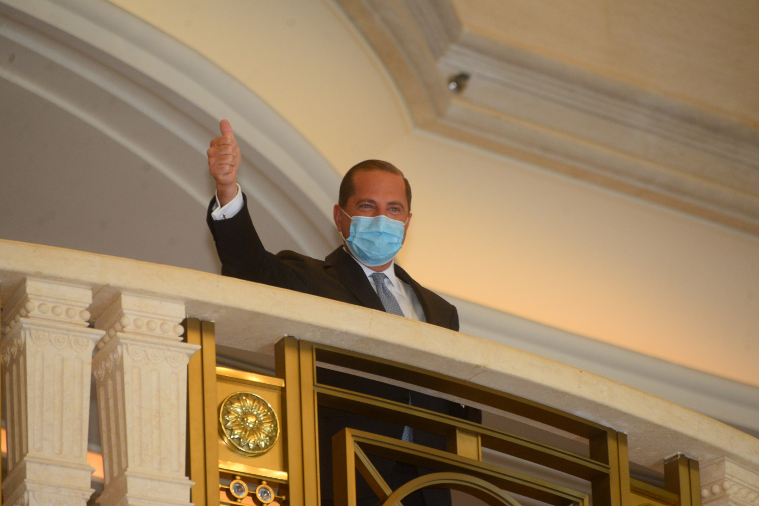 接在吳釗燮之後發言,阿扎爾表示,今天這個場合同時也看到許多媒體來到現場,「這是多麼有鮮活又確實的例證,證明台灣所代表的『共享、民主、開放』的價值觀!」阿扎爾同時表示,很榮幸捎來川普總統的問候,並代表川普來見證台灣在全球公衛領域的領導地位。
