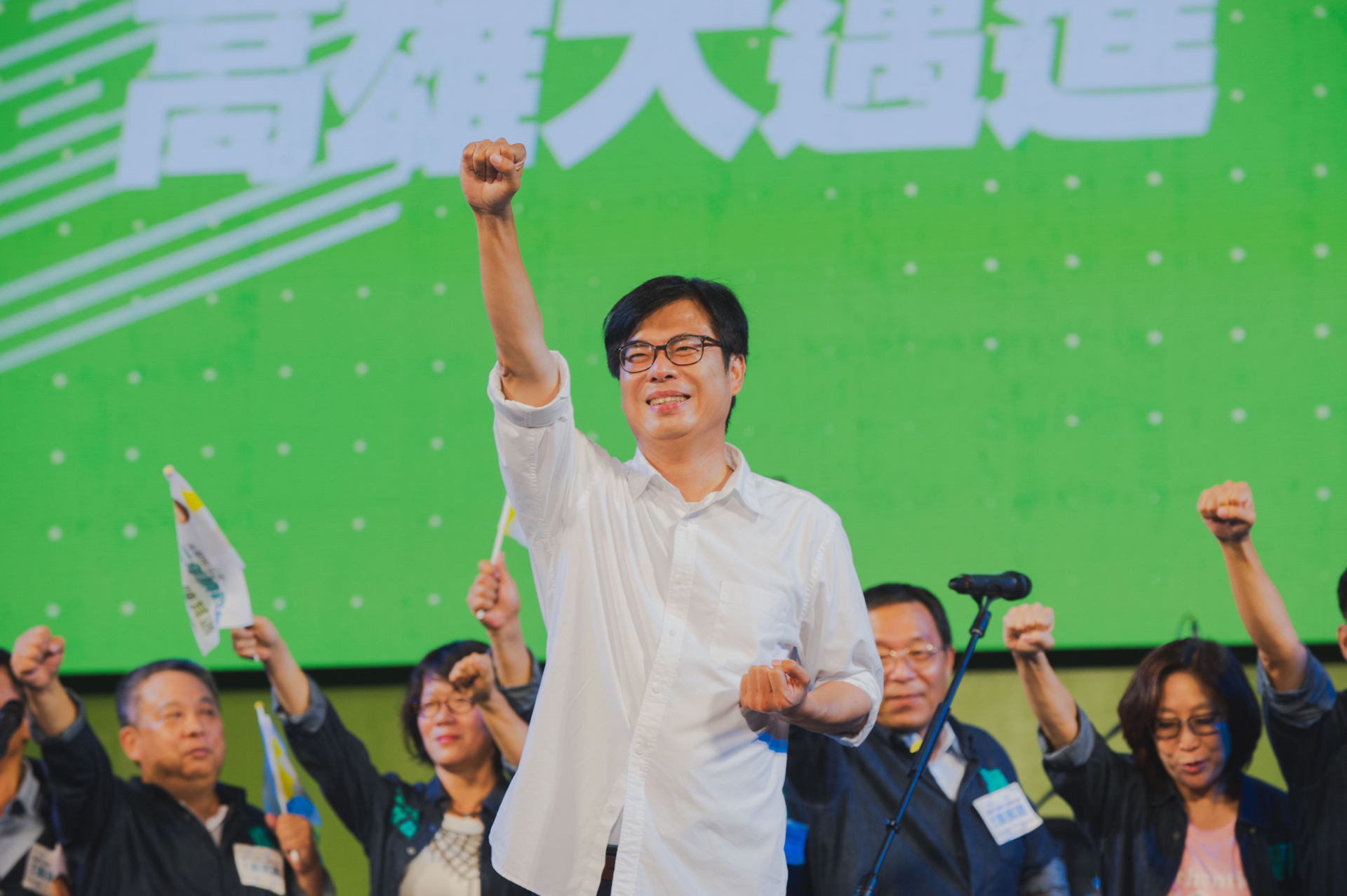 高雄市長補選結果15日揭曉,民進黨候選人陳其邁得票數一路遙遙領先對手李眉蓁與吳益政,最後大勝李眉蓁42萬票,在這黨補選中,成功拿下高雄市長寶座。