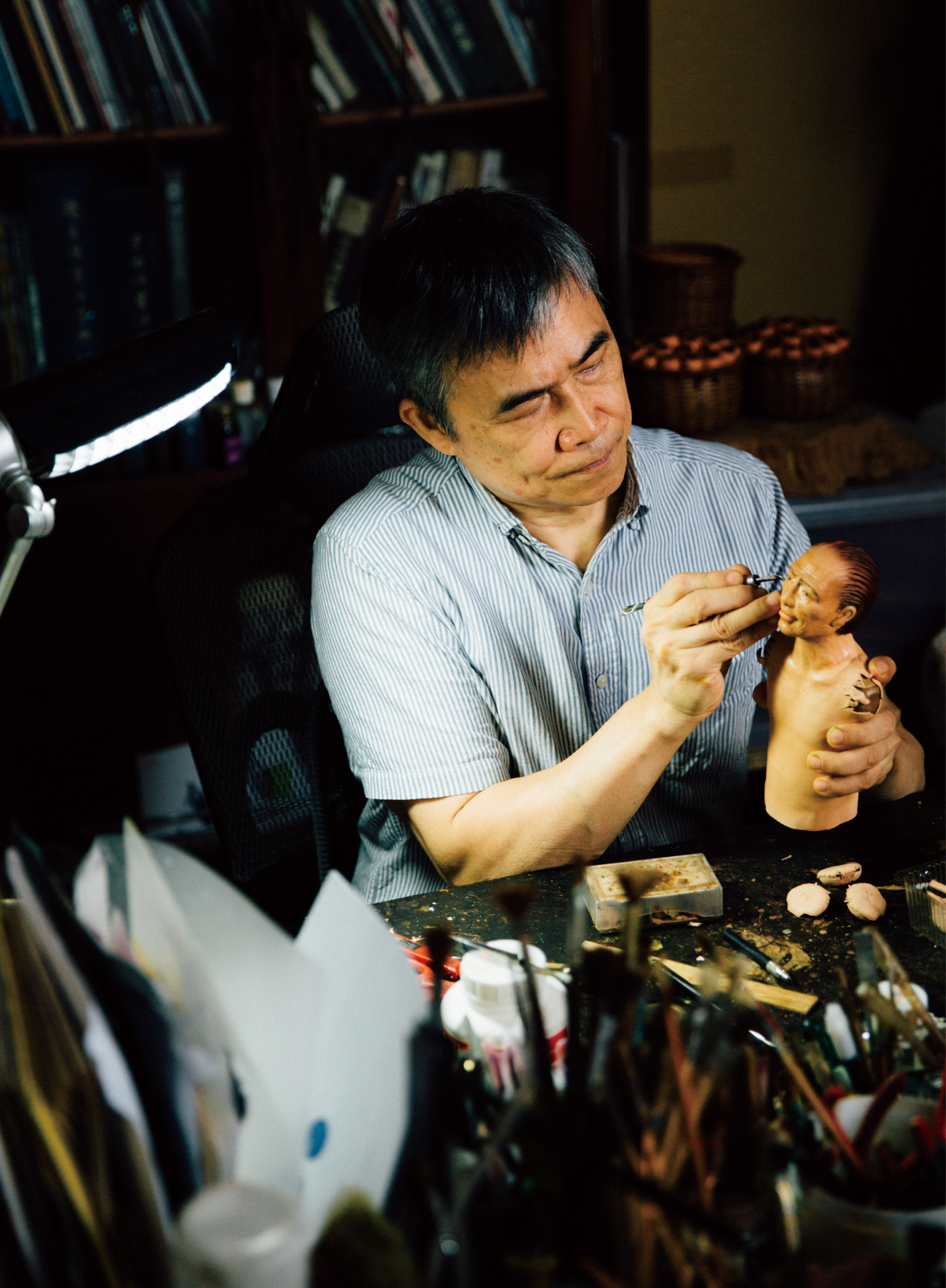 踏入葉發原家中,整面櫥櫃中整齊擺滿了他各系列的創作,不論是瓜果、螃蟹、螳螂還是螞蟻,每件作品皆幾可亂真、栩栩如生。而故鄉大溪的鄉土情懷與日常生活,是他創作的靈感來源。