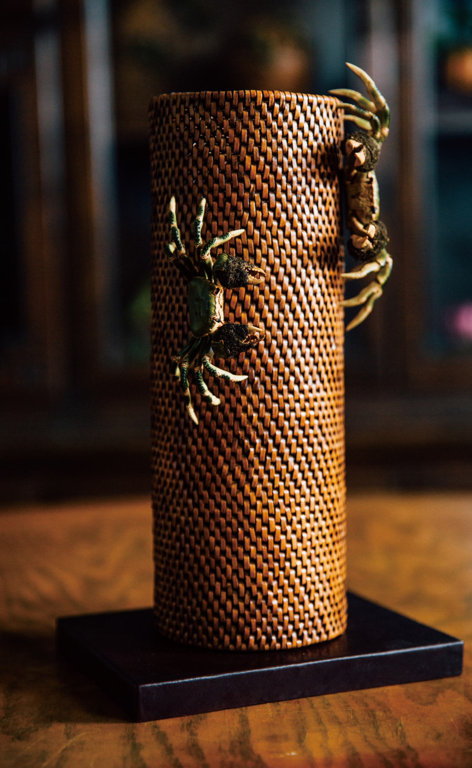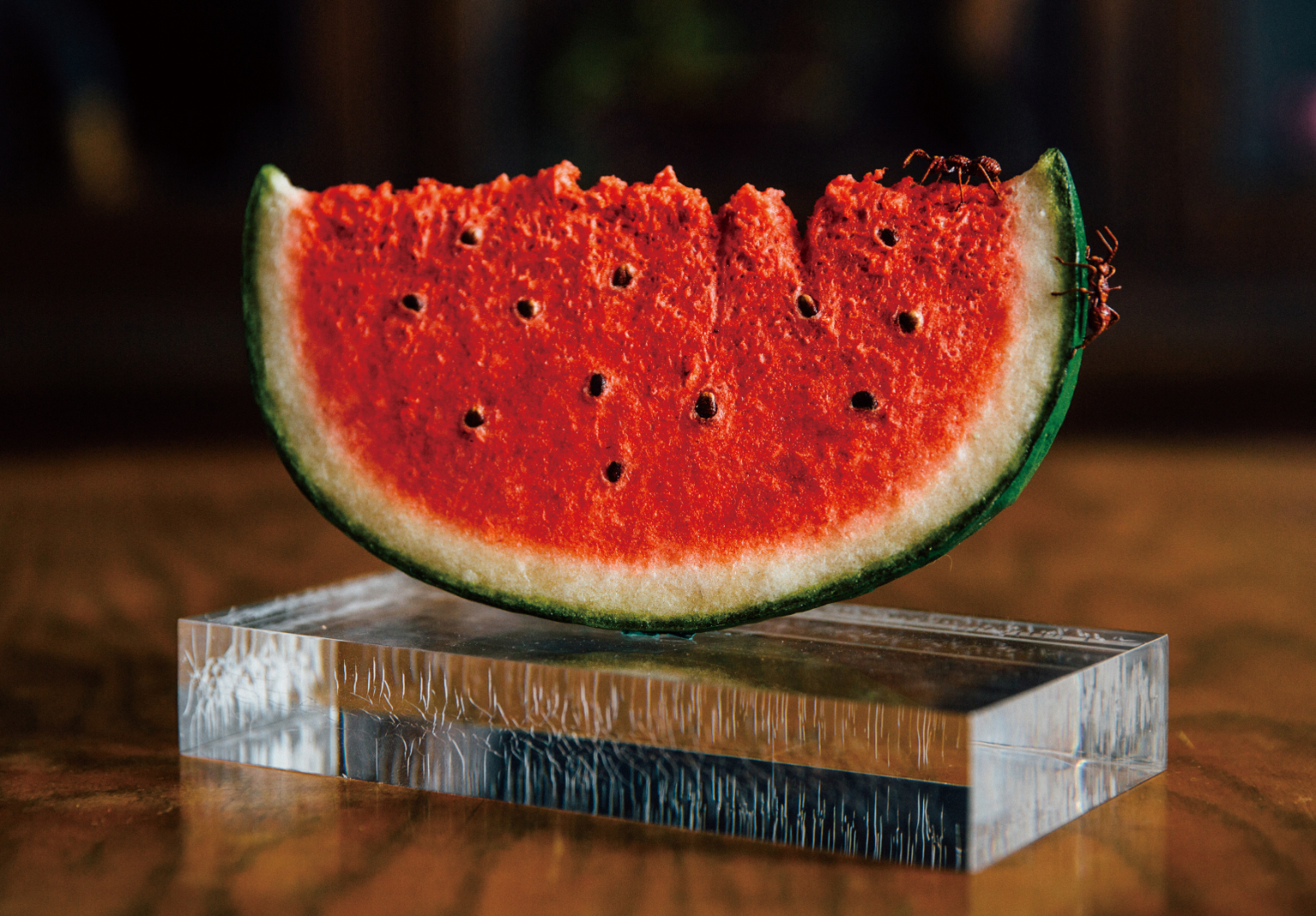 然而在創作初期,葉發原曾度過數年沒沒無聞且入不敷出的時光。某日他在街邊撞見熟紅的螃蟹,喚起幼時於溪邊玩耍的記憶,開啟了他將鄉土生命力融入創作的靈感,於是陸續有了螃蟹、螞蟻、螳螂、田園瓜果等系列作品。將自然生態用皮革細膩地雕塑呈現,自此成了葉發原獨特的個人風格。