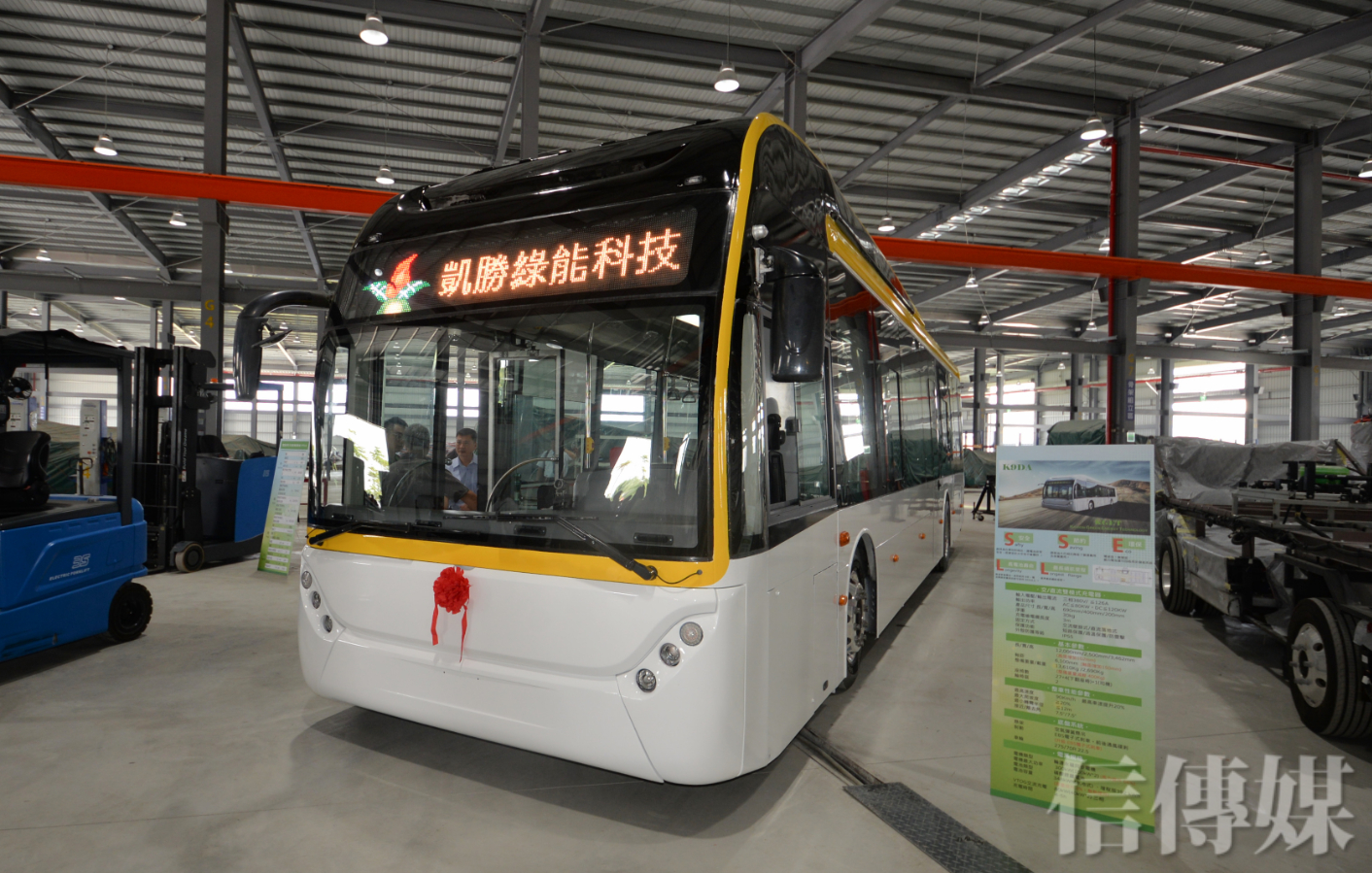 電動巴士在政策支持下,也將像太陽光電、電動機車一樣開始改變產業生態。國內電動巴士市占率第一的凱勝綠能,18日在嘉義馬稠後產業園區的一期廠房落成啟用,該廠投資5億元,規劃短期內可具備年產350輛以上電動低地板公車整車或底盤,凱勝董事長陳怡仁表示,政府已計畫在幾年內汰換上萬輛傳統公車為電動巴士,凱勝將配合客運業者,滿足市場需求。