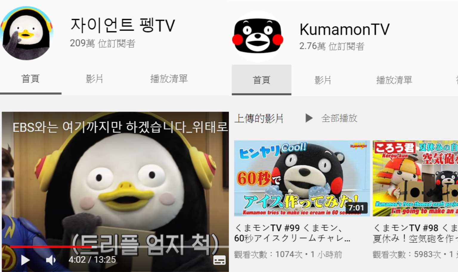 相較之下,2019年《韓國教育電視台》(EBS)創造出的企鵝Pengsoo在南韓顯得一枝獨秀。