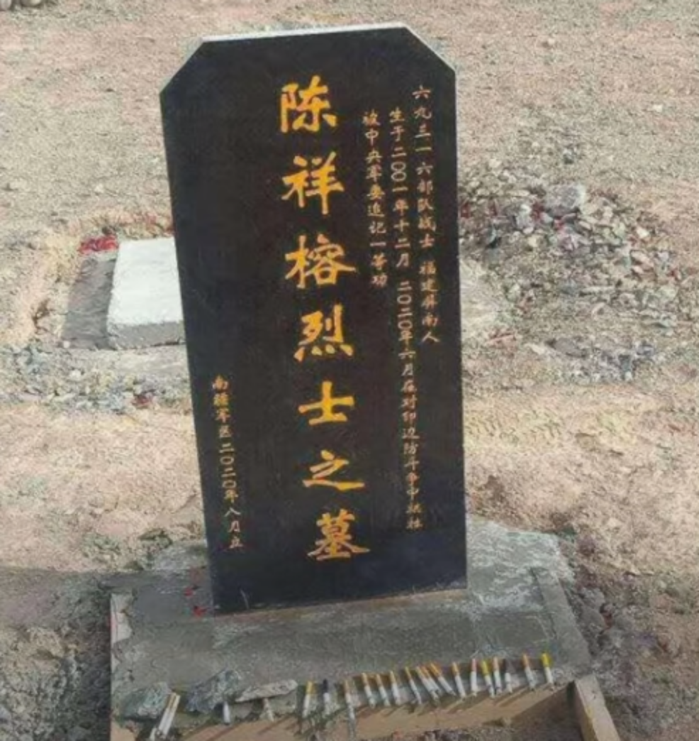 最近網路瘋傳一張黑色墓碑照片,上面寫著死者為士兵陳祥榕,生於2001年12月,生前在69316部隊服役,死於今年6月的對印邊防鬥爭。